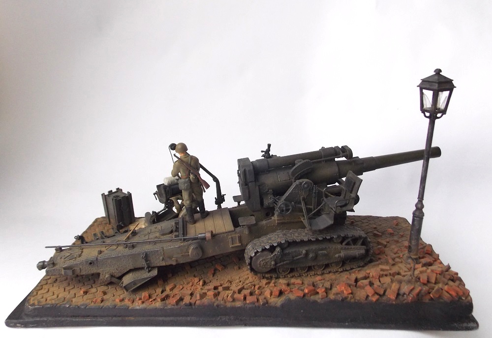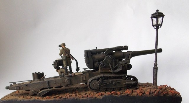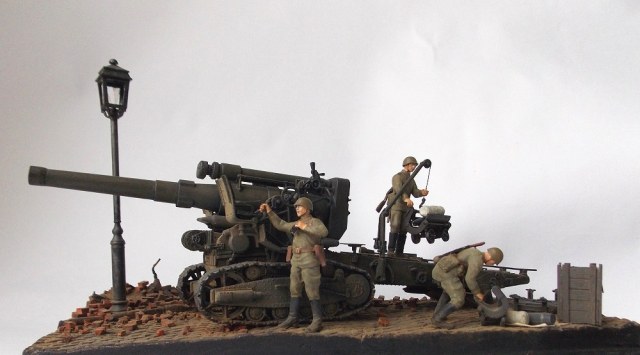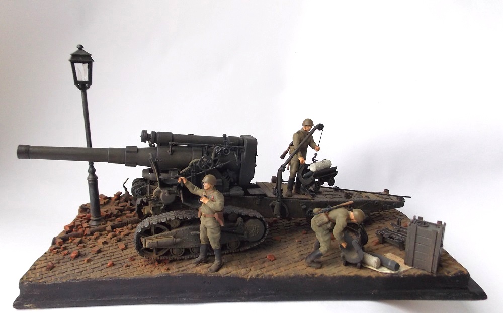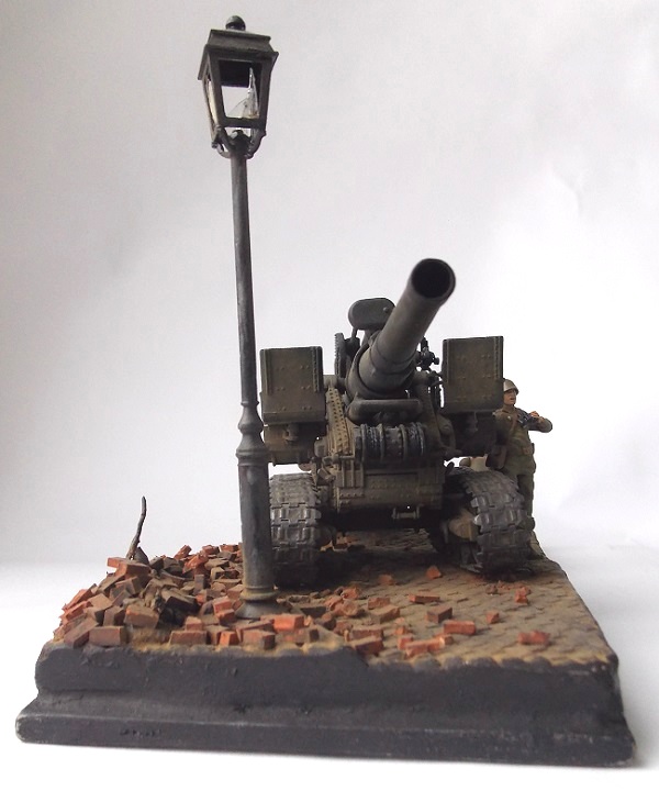 Гаубица Б4 ведет огонь на улицах Берлина. Весна 1945. За основу сюжета взяты известные фото и видео, где Б 4 стреляет практически прямой наводкой. На сайте уже представлена одна диорама с подобным сюжетом. Предлагаю свое виденье подобной композиции. Эта диорама очень старый мой долгострой, она делалась где то год с хвостиком.