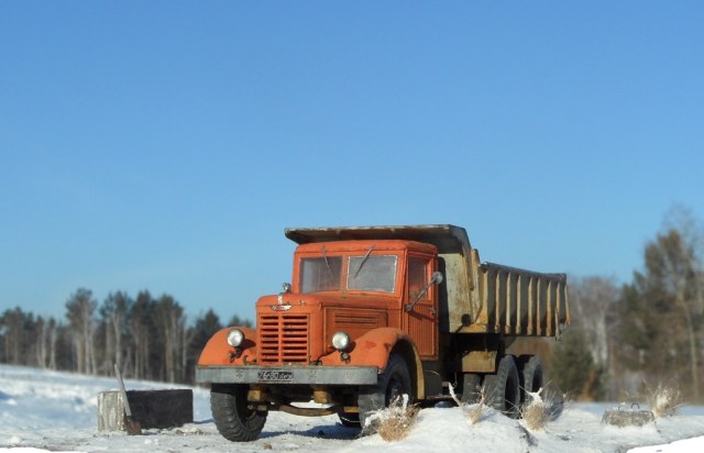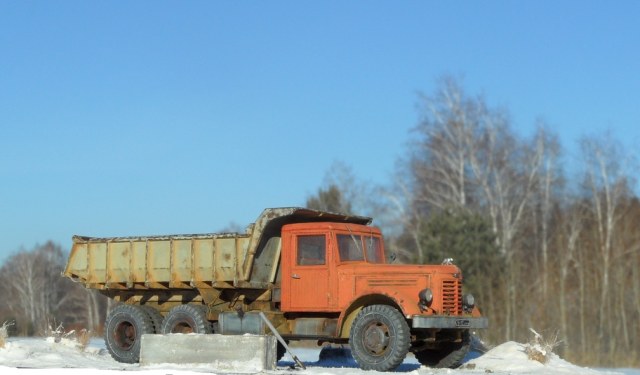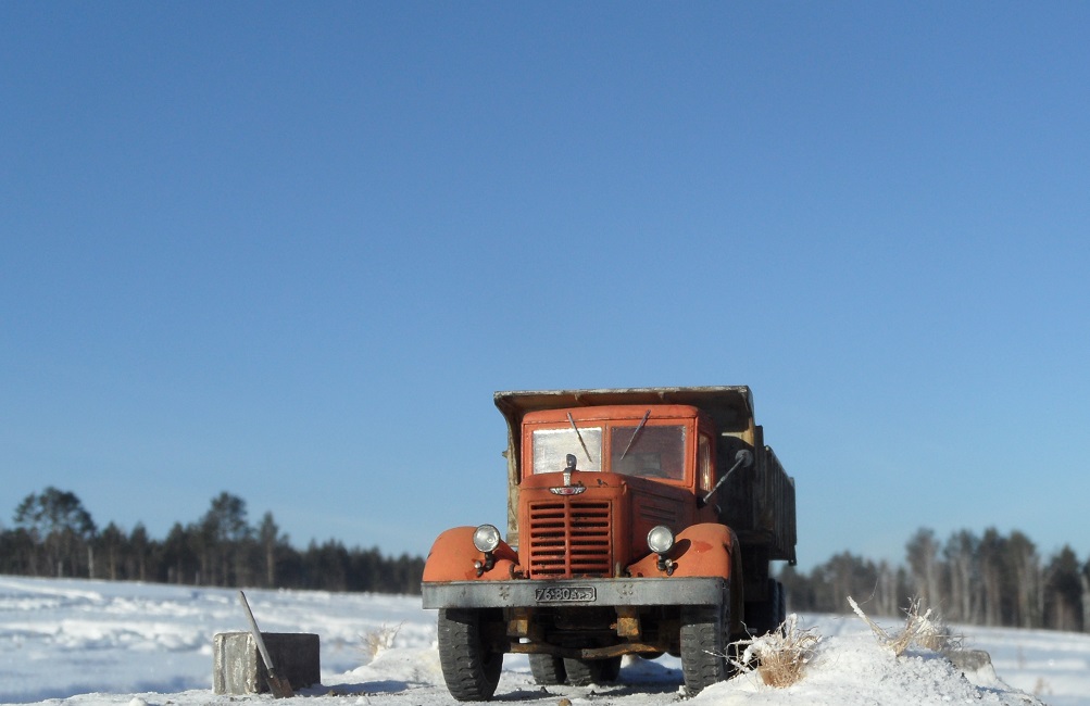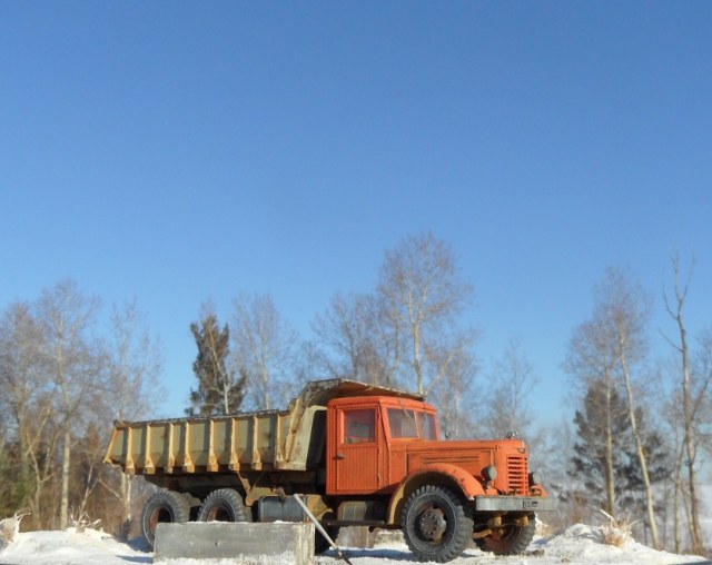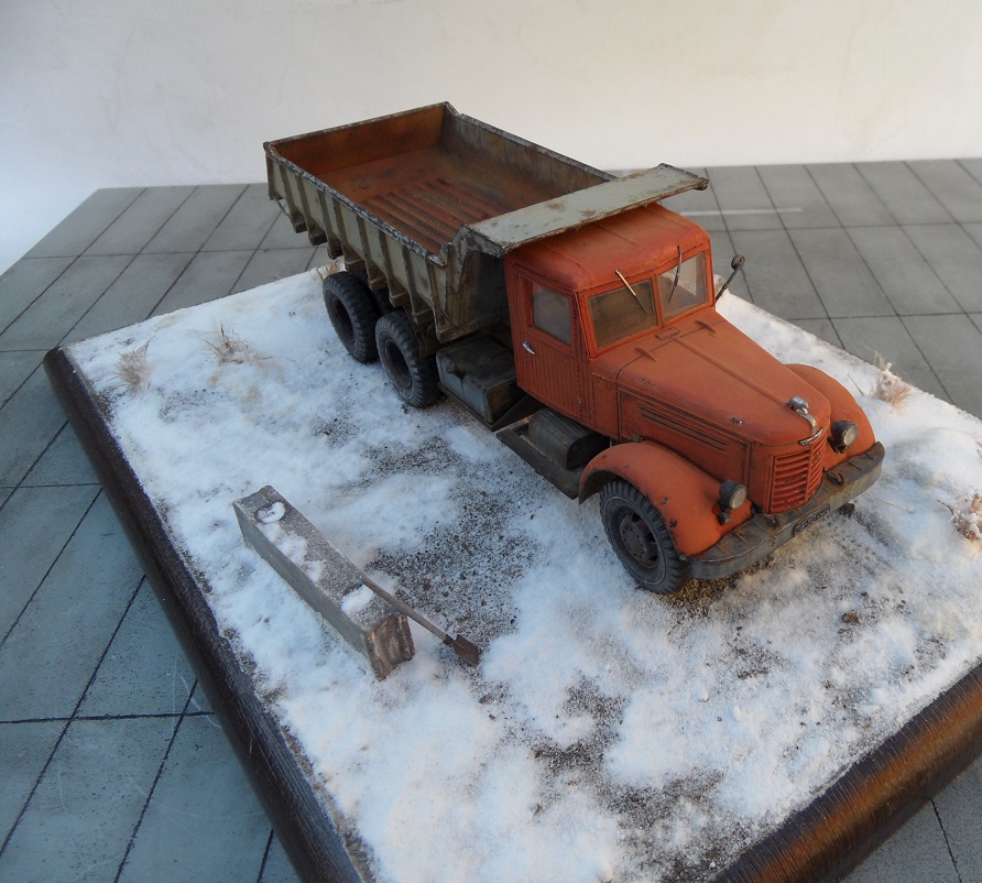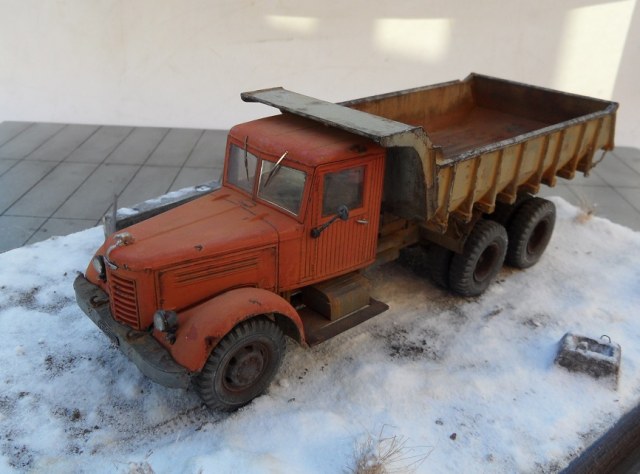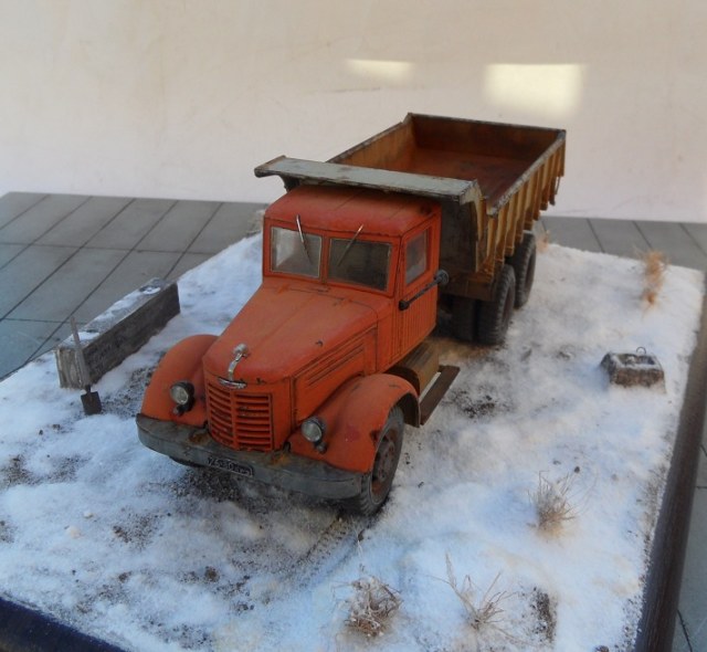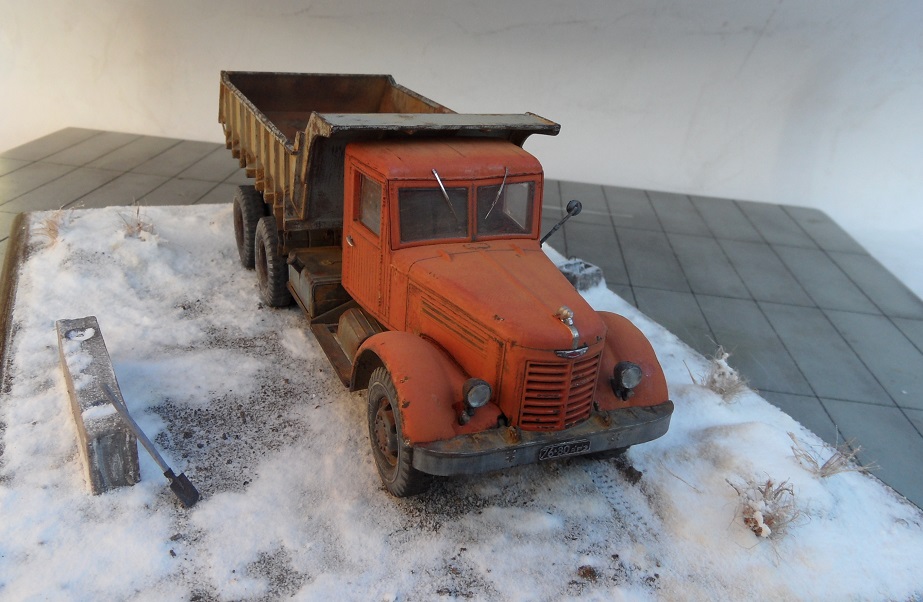 Всем привет! Очередной авто в 43 масштабе от замечательной фирмы "Автомобиль в деталях". Модель интересна не только тем что никто ее больше не выпускает кроме АВД, а еще и тем что почти вся сделана из металла- рама, кабина , кузов , бампер и откидной борт- отлито все это дело очень качественно и весу так сказать прибавляет, чувствуется грузовик в руке). Сборка -стыковка как обычно -просто отличная. Из дополнений я повесил ведро от Петрограда, дворники переделал от Зил 130,номера Петрогад. Модель отлично детализирована, собирал с удовольствием. Окрашена эмалью Мотип-Коррида, кузов серый, тонирована пигментами Миг,Тамия. Бетонные "сооружения"- СМУ 23. Приятного просмотра!