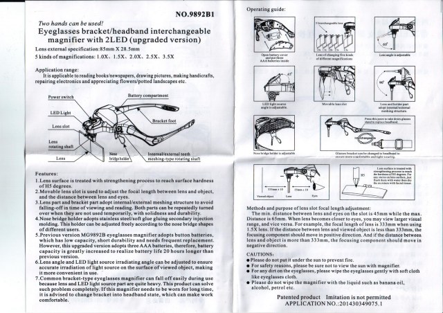 Да, забыл сказать - очки-лупа имеет возможность регулировки фокусного расстояния, правда дискретно (это видно из инструкции - кронштейн "ездит" по направляющим, можно регулировать.