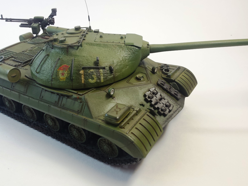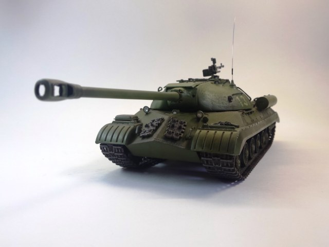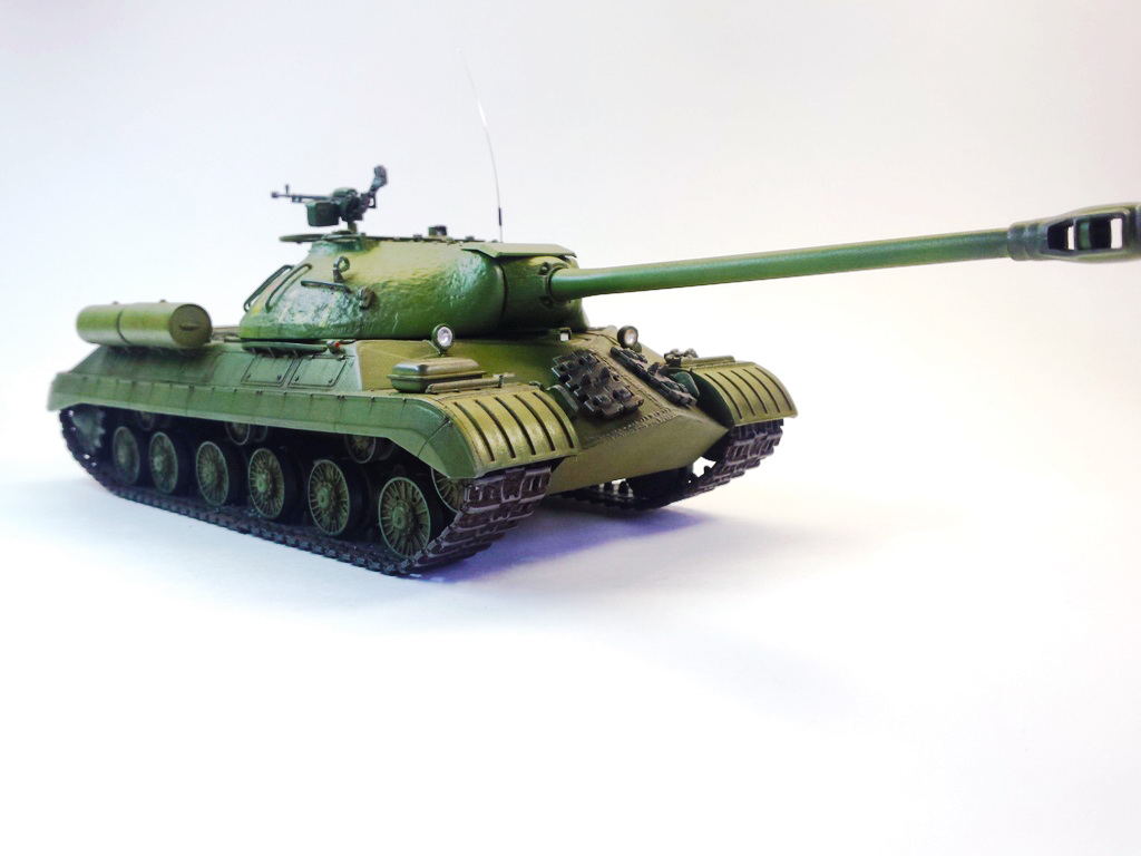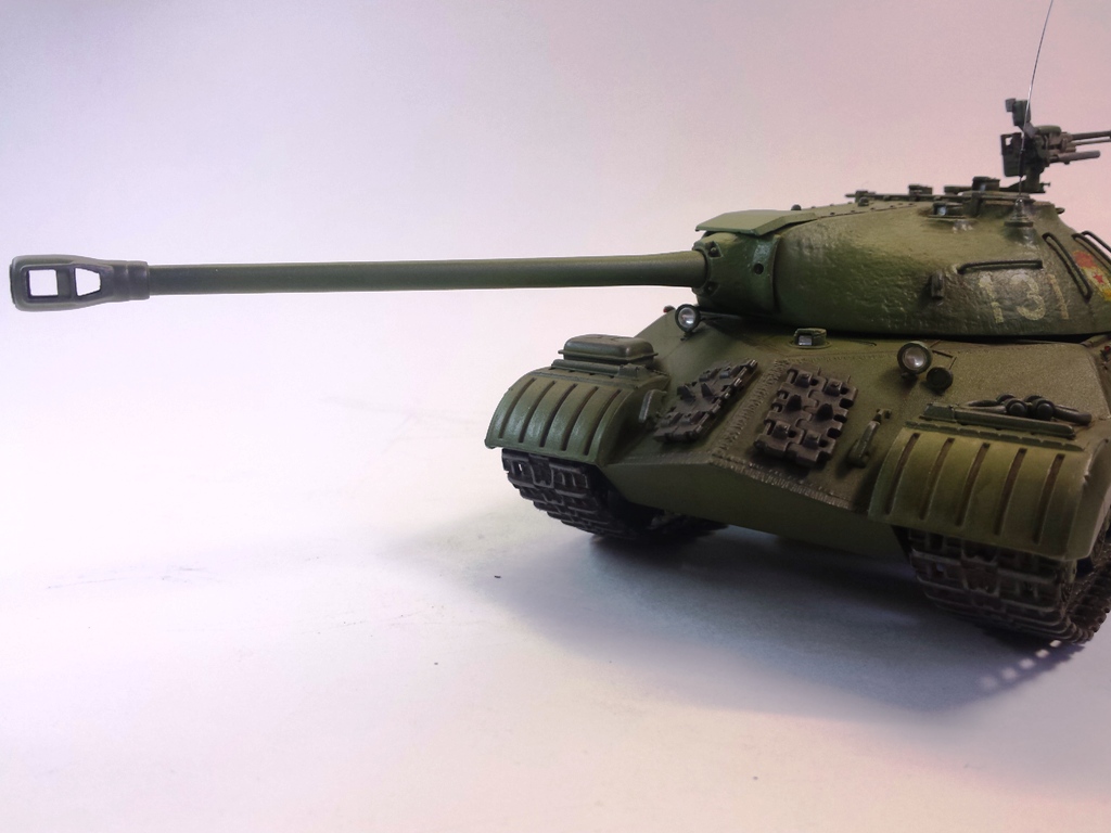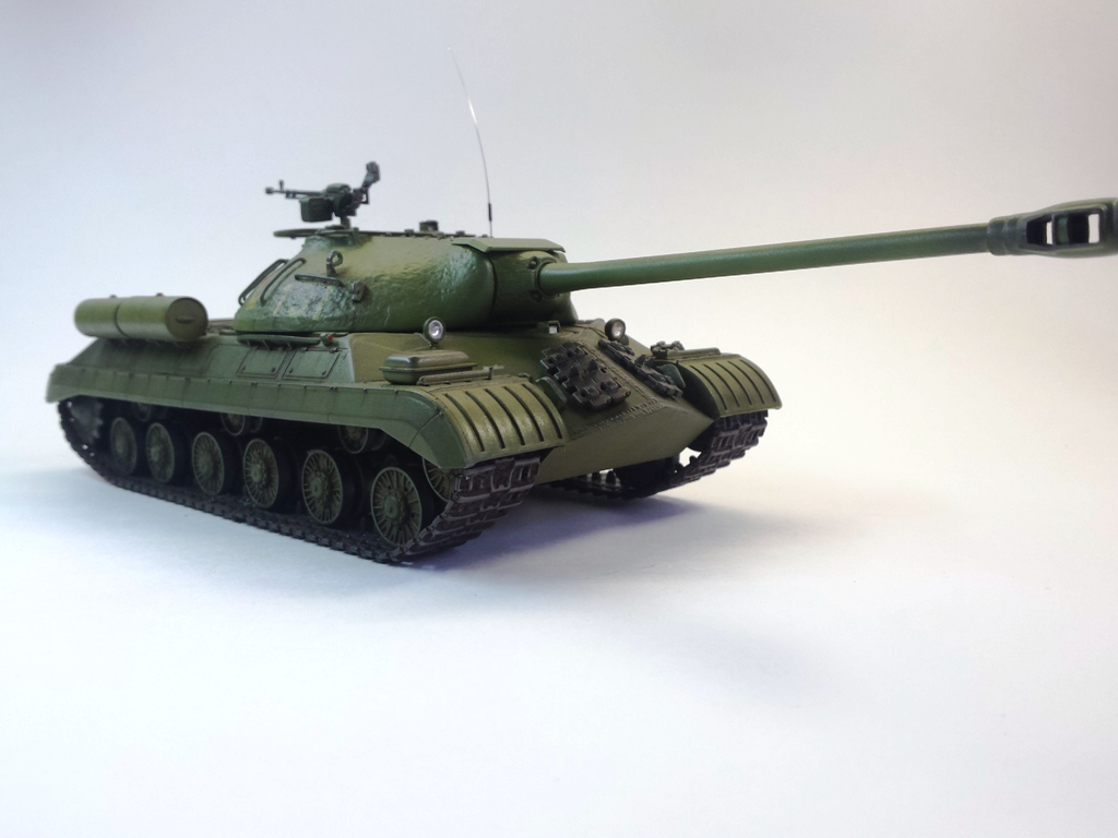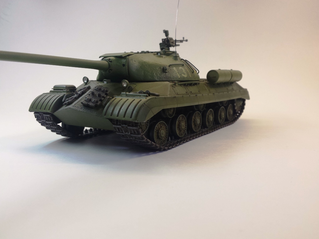 Здравствуйте Уважаемые моделисты! Представляю на Ваш суд модель танка ИС-3м от фирмы трумпетер. Модель выполнена из коробки мат. частью не увлекался и доработок глобальных не делал т.к. целью данной постройки была покраска с применение эффектов предшейтинга, высветления, везеринга, смывки и нанесение пигментов. Это моя первая модель танка с применением вышеуказанных технологий раньше я этим не владел решил себя попробовать. На модели сделал поручни из проволоки, триплексы из CD диска, фары, антенна из гитарной струны и тросы. При покраске использовал краски Тамия, MR.hobby, Акан, художественные маслянные краски. Пигменты использовал от фирмы ZIP maket. Результатом почти доволен подвели чуть пигменты. Что вышло моими кривыми руками судить Вам к табуретам готов приятного просмотра. С Уважением удачи!