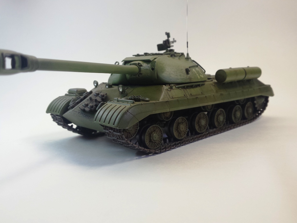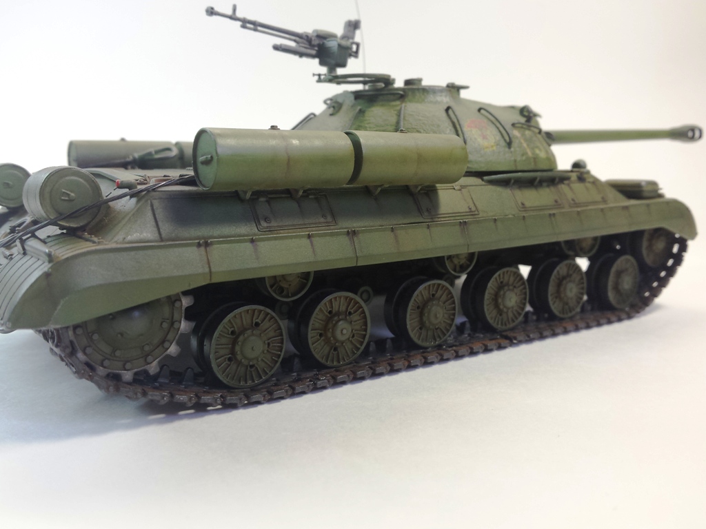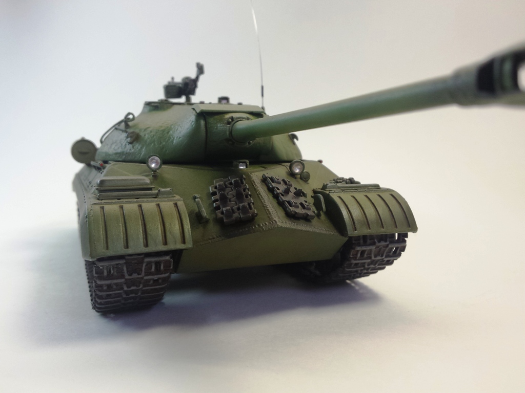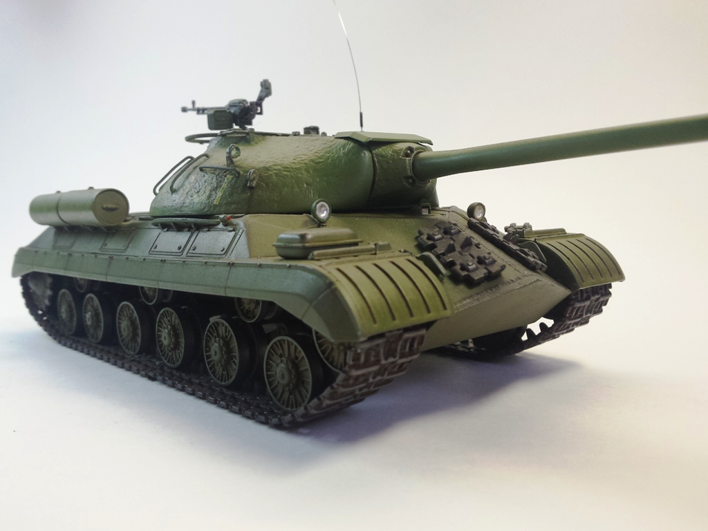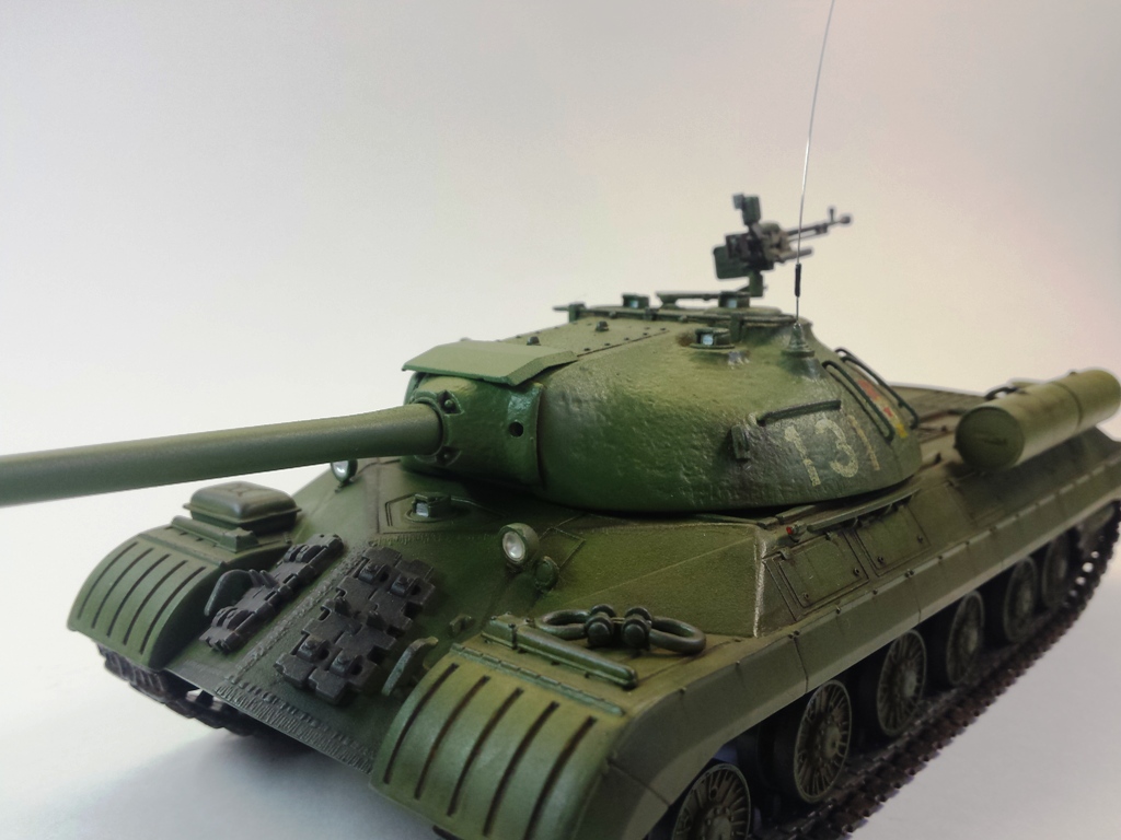 Здравствуйте Уважаемые моделисты! Представляю на Ваш суд модель танка ИС-3м от фирмы трумпетер. Модель выполнена из коробки мат. частью не увлекался и доработок глобальных не делал т.к. целью данной постройки была покраска с применение эффектов предшейтинга, высветления, везеринга, смывки и нанесение пигментов. Это моя первая модель танка с применением вышеуказанных технологий раньше я этим не владел решил себя попробовать. На модели сделал поручни из проволоки, триплексы из CD диска, фары, антенна из гитарной струны и тросы. При покраске использовал краски Тамия, MR.hobby, Акан, художественные маслянные краски. Пигменты использовал от фирмы ZIP maket. Результатом почти доволен подвели чуть пигменты. Что вышло моими кривыми руками судить Вам к табуретам готов приятного просмотра. С Уважением удачи!