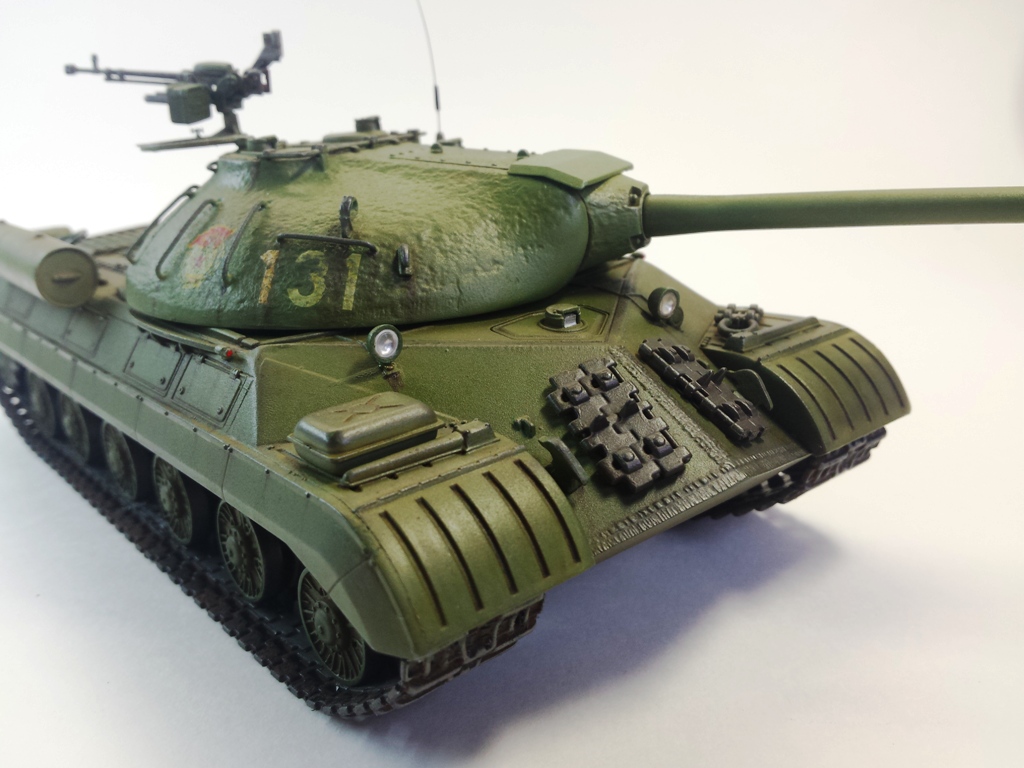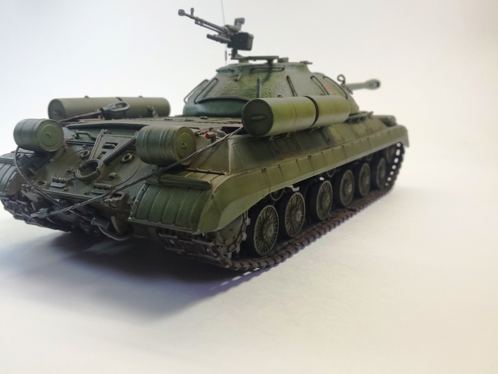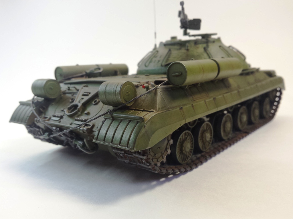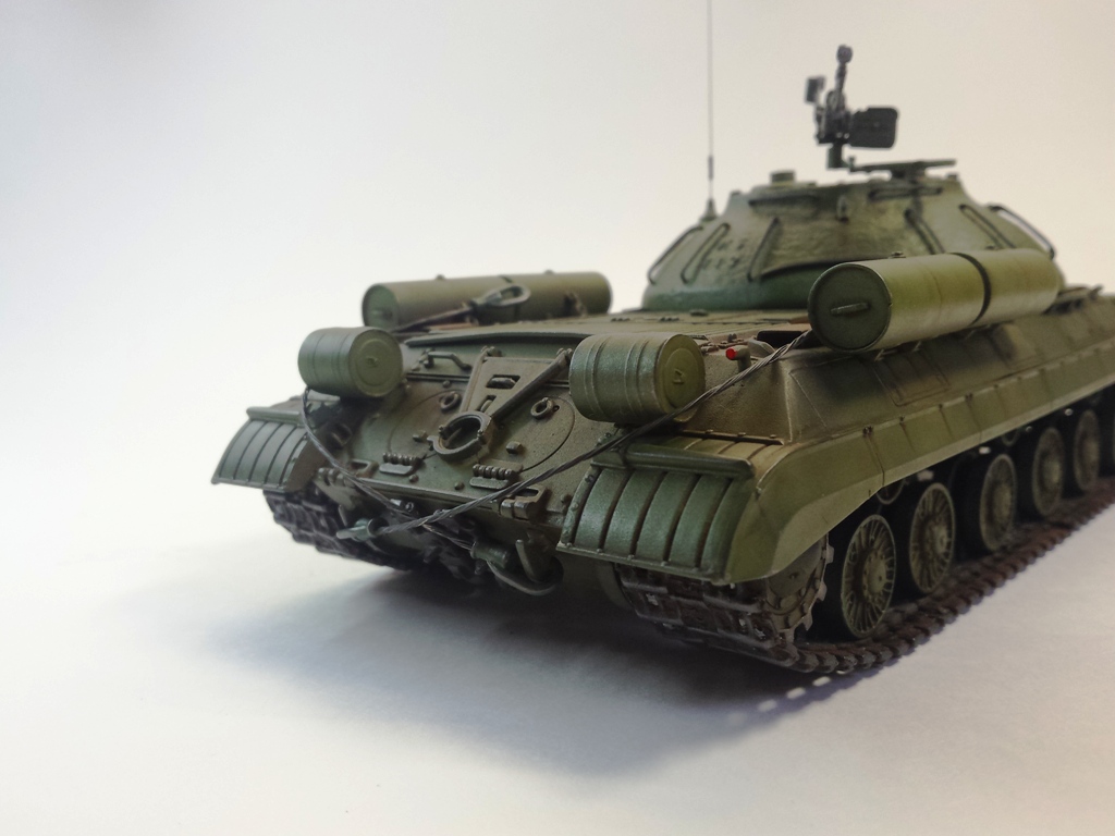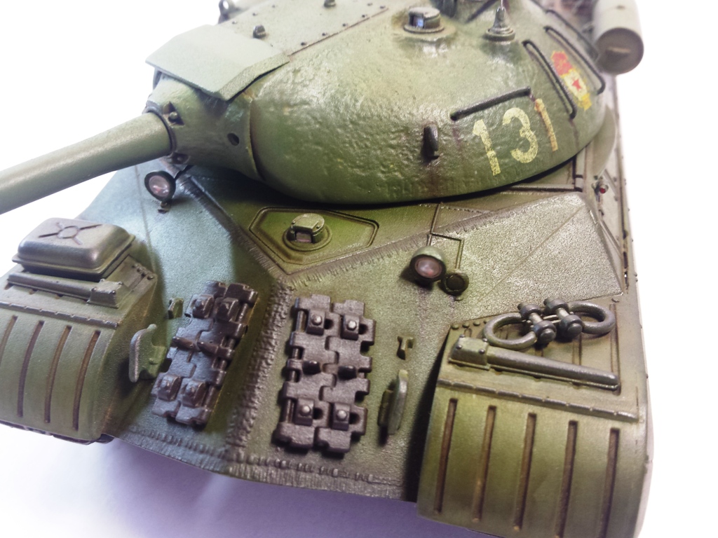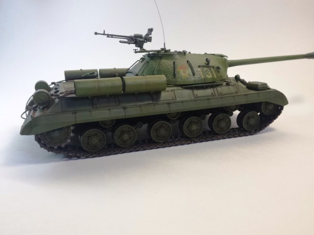 Здравствуйте Уважаемые моделисты! Представляю на Ваш суд модель танка ИС-3м от фирмы трумпетер. Модель выполнена из коробки мат. частью не увлекался и доработок глобальных не делал т.к. целью данной постройки была покраска с применение эффектов предшейтинга, высветления, везеринга, смывки и нанесение пигментов. Это моя первая модель танка с применением вышеуказанных технологий раньше я этим не владел решил себя попробовать. На модели сделал поручни из проволоки, триплексы из CD диска, фары, антенна из гитарной струны и тросы. При покраске использовал краски Тамия, MR.hobby, Акан, художественные маслянные краски. Пигменты использовал от фирмы ZIP maket. Результатом почти доволен подвели чуть пигменты. Что вышло моими кривыми руками судить Вам к табуретам готов приятного просмотра. С Уважением удачи!