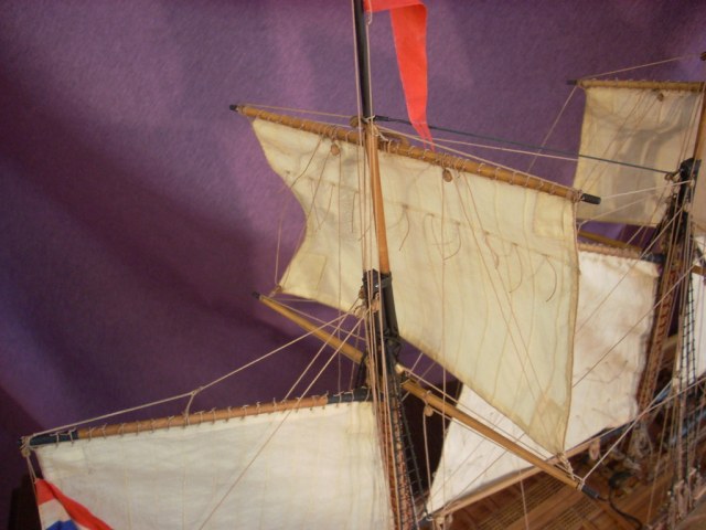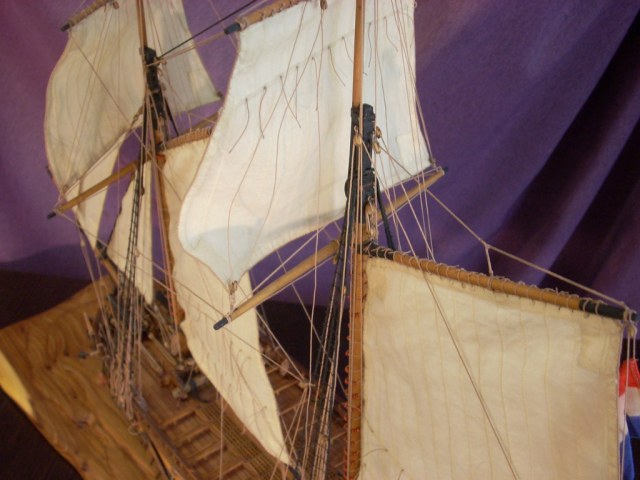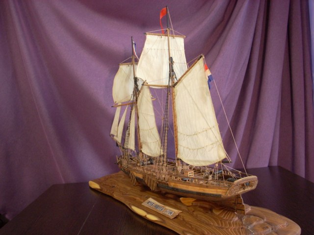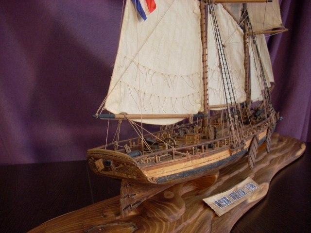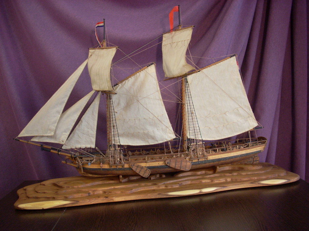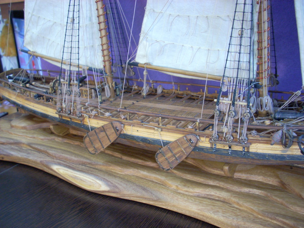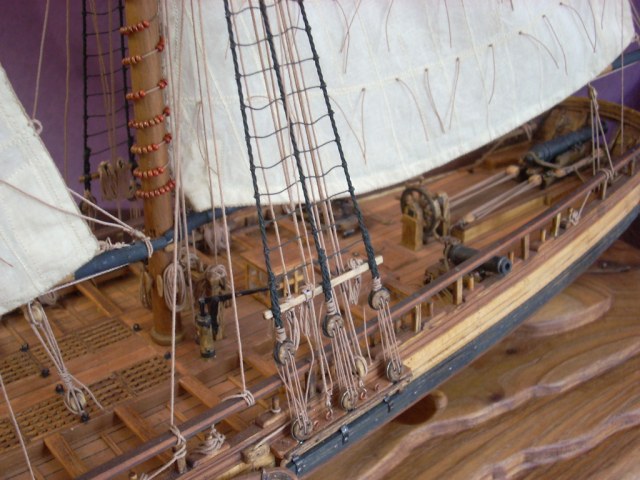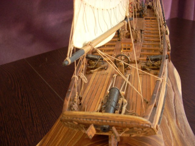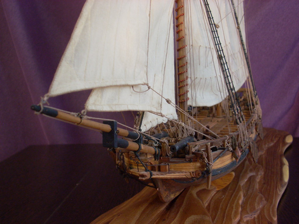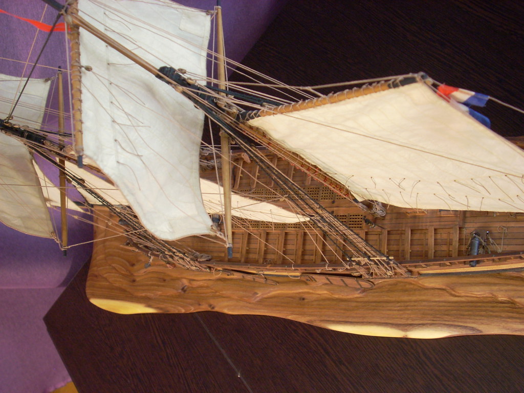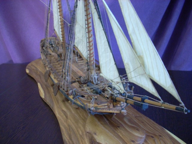 Проектом сам доволен. Изначально планировал делать без парусов, просто рангоутную модель.Но народ и жена настояли что бы были паруса...... И сам теперь ни чуть не жалею. Есть моменты по корпусу которые сейчас бы сделал чуть по другому, но ему уже пару лет, а тогда и я другой был и опыта меньше было.........