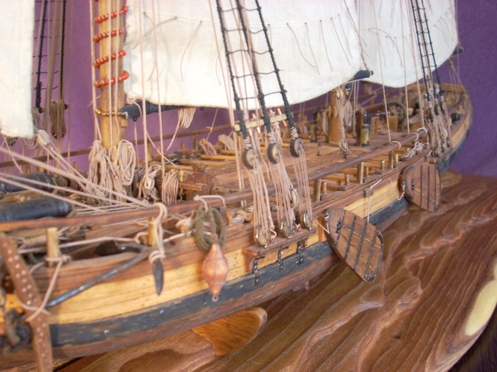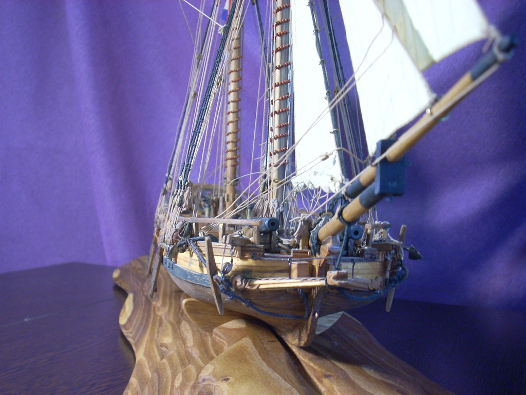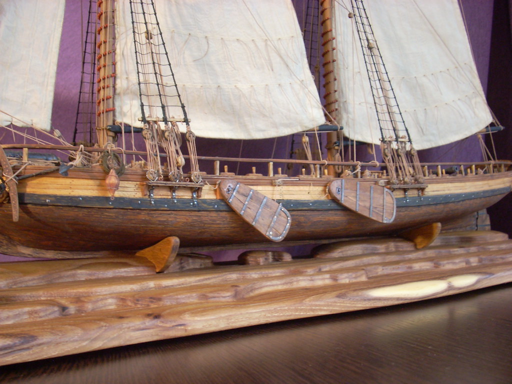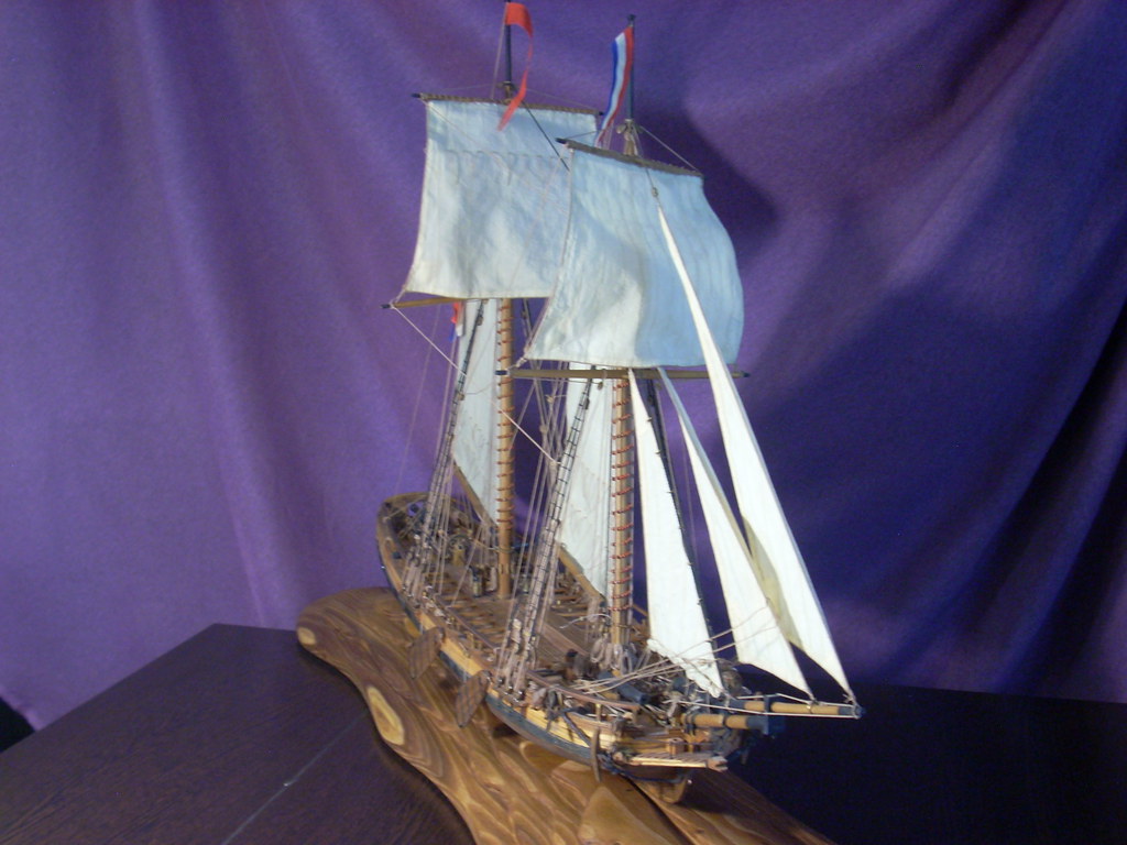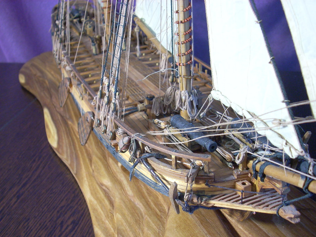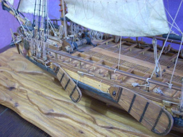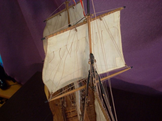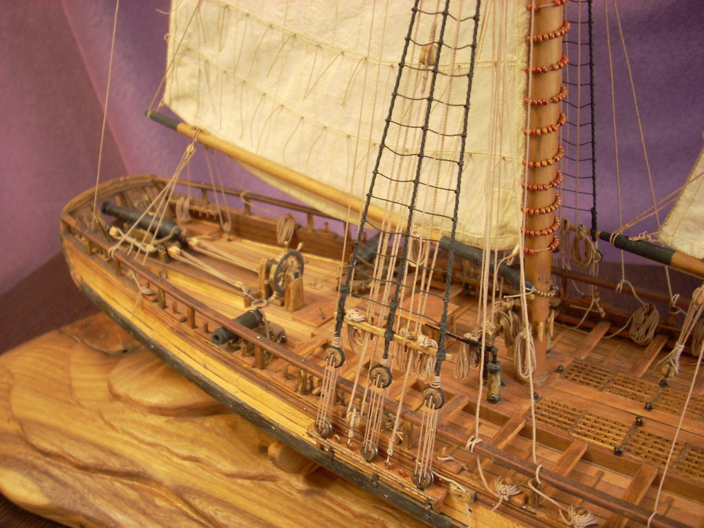 Проектом сам доволен. Изначально планировал делать без парусов, просто рангоутную модель.Но народ и жена настояли что бы были паруса...... И сам теперь ни чуть не жалею. Есть моменты по корпусу которые сейчас бы сделал чуть по другому, но ему уже пару лет, а тогда и я другой был и опыта меньше было.........