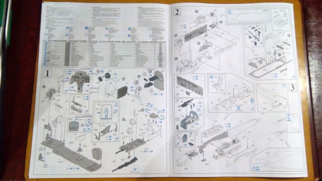 О модели: Коробка большая выполнена в плотном картоне, с самолетом на обложке, на обратной стороне размещены изображения-рендеры выдающихся узлов данной модели. Внутри литники, каждый запакован в индивидуальный пакет. Всего в наборе 12 литников, выполненных в сером пластике, 2 литника прозрачных (фонарей), 1 фототравление ремней для сидений. Далее в боксе находится инструкция выполнена в серо-голубых тонах в виде длинной полосы из 4 листов формата А4 (вертикальных), сложенном вчетверо. Инструкция предлагает нам 2 варианта окраски и обдекаливания: