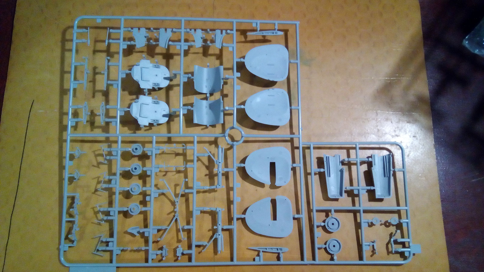 Размеры деталей поражают по сравнению с 72 масштабом, а в сборе пока не знаю... Есть большие планы на него, хочется ночную диораму сделать... Если конечно не продам!