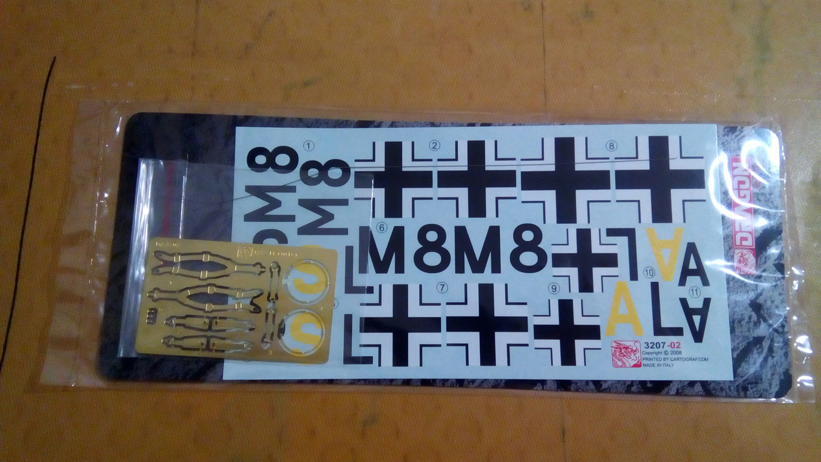 Декаль: Декаль как и сама модель очень хорошая! Небольшой лист, яркий, красочный, без смещений цветов, также находится в индивидуальном целлофановом пакете + в пакете лежит кусочек отрезка стальной проволоки для изображения «подбрюховой» антенны.