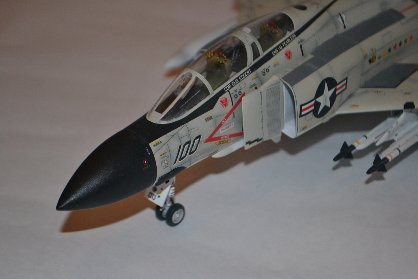 Отличный Фантом, очень понравилась окраска! Попридираюсь только чуть-чуть к Сайдвиндерам - самые кончики нужно было серебрянкой выделить (показать головки самонаведения).