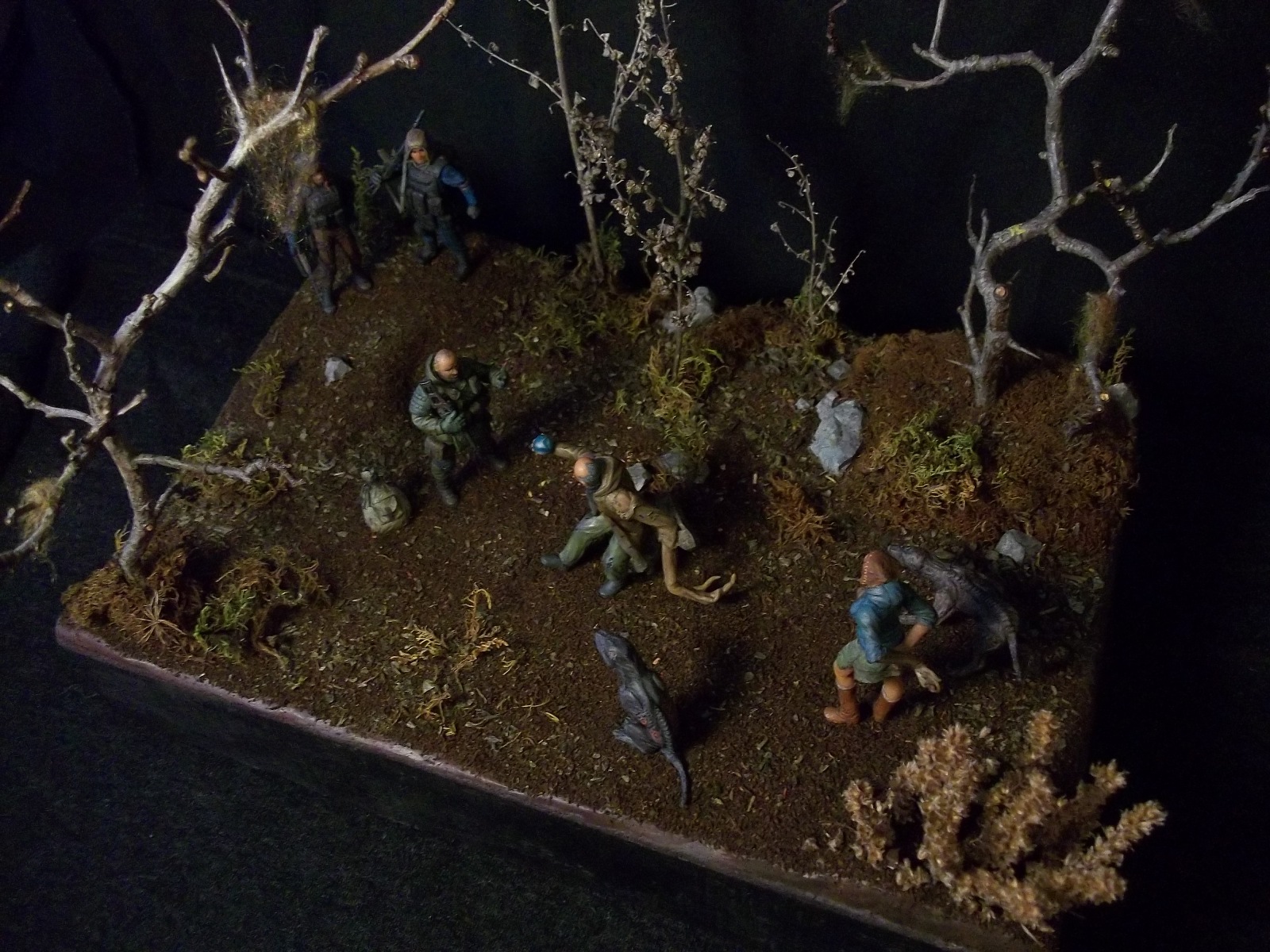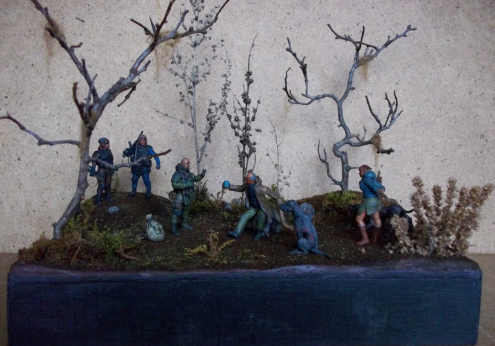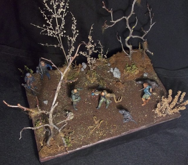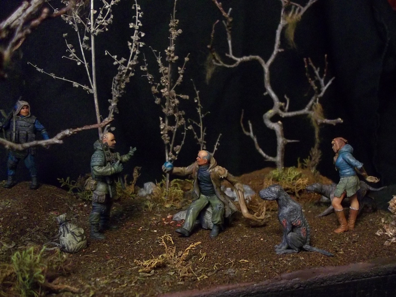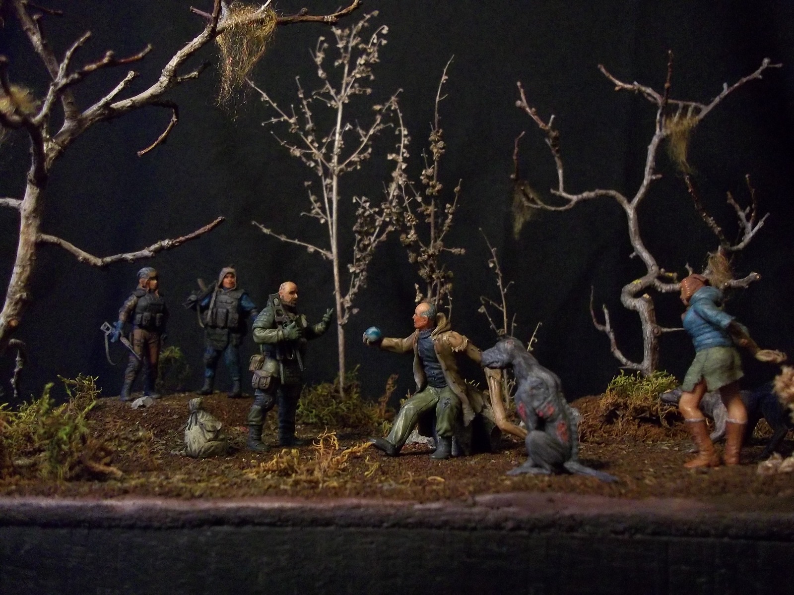Думаю , для баланса необходимо в руку "Излому" не "Лунный свет" а Колобок(не артефакт а того самого из сказки)...уж не знаю каким образом но в той местности вполне допустимо ))) Так сказать - хотели хлеба и зрелищ ? -ну так получите ))) . ДеФФки как всегда великолепны , сталкерша с маленьким носиком похожа на обезьянку )...и да ,Изломиха СУПЕР ))). Псы ( политкор. Собаки) своим философским видом напугают кого угодно( блин , они и отдельно будут здорово смотреться). Разумеется можно дополнить чем то диораму а можно и не дополнять , ИБО общее впечатление - БЛЕСК !!!