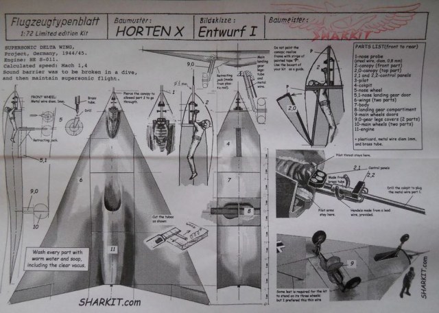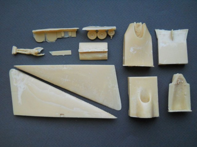 Модель из смолы от фирмы Sharkit в масштабе 1/72 упакована в прочную картонную коробку с верхним открытием. Литьё довольно низкого качества.Членение фюзеляжа, на мой взгляд, излишне усложнено и усугубляется разнообразными дефектами. Ваку-фонарь весьма сложен по форме и даётся в двух экземплярах. Прилагаются металлические профили. Декали отсутствуют. Инструкция по стилю исполнения традиционна для данной фирмы.