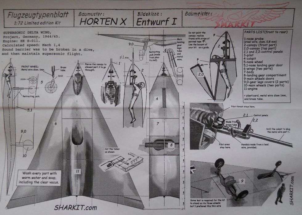 Horten X Entwurf 1 - проект 1944-45 гг., по которому информации имеется очень мало. Двигатель HeS 011. Расчётная скорость1,4 Мах.