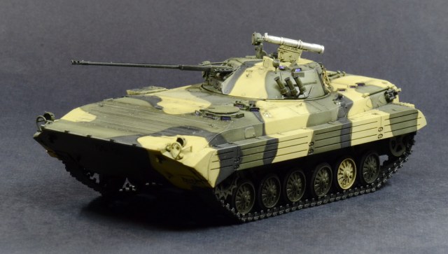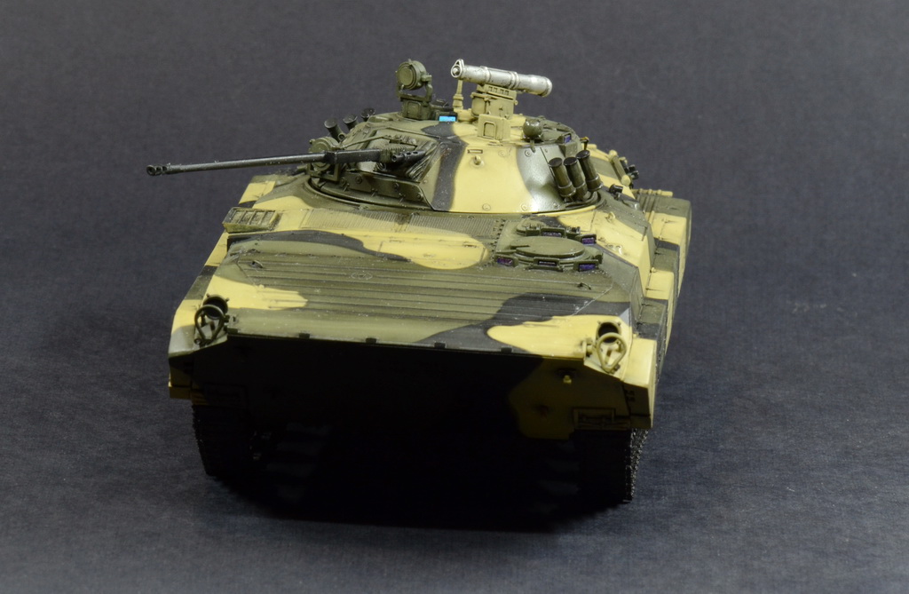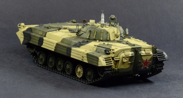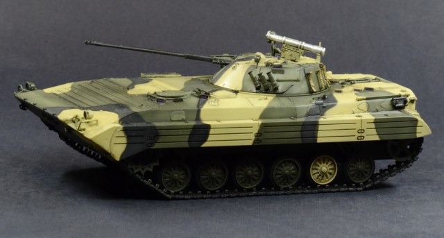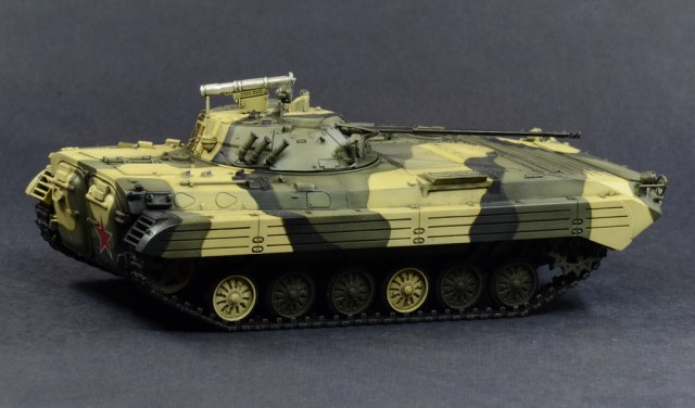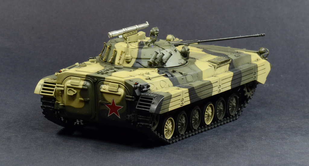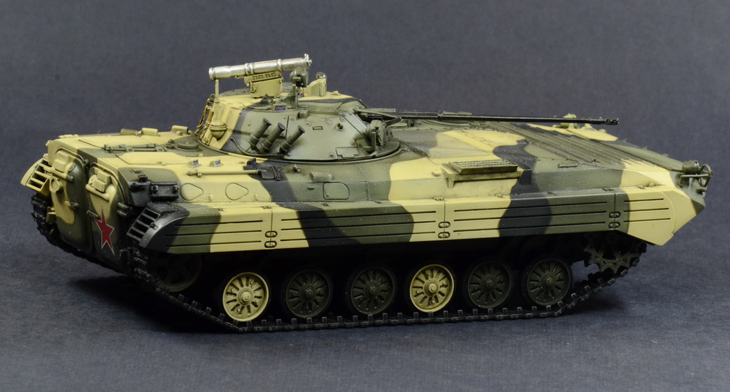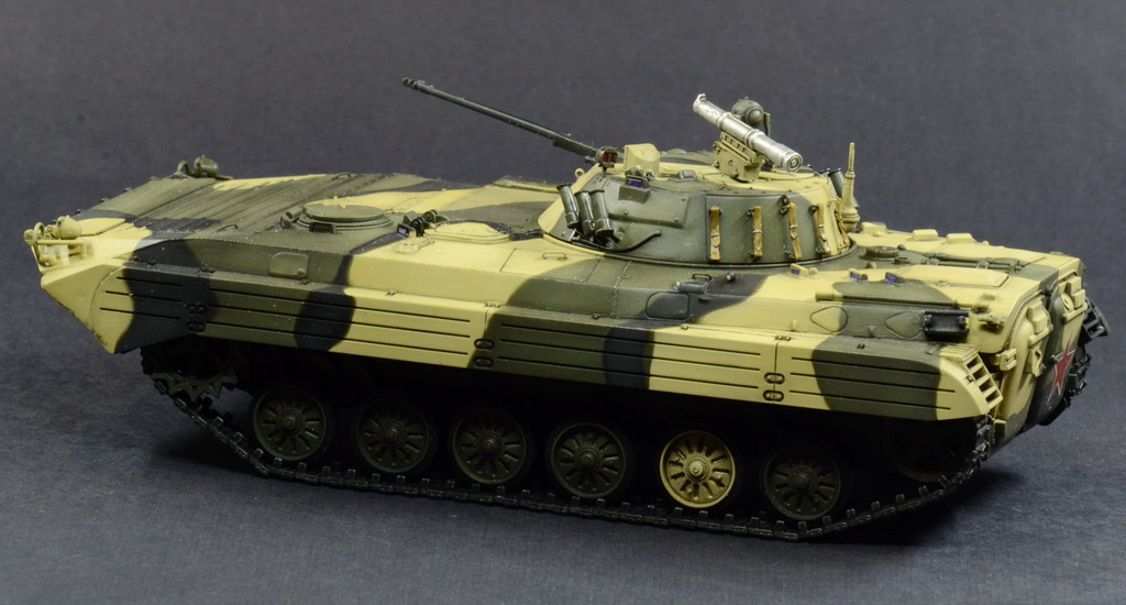 Выставляю на Ваш суд модель БМП-2 от отечественной фирмы. Модель собиралась по просьбе начальника. Камуфляж и звезда на корме это его хотелка.
