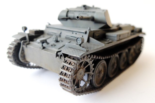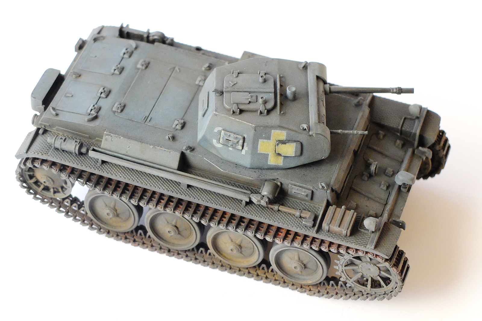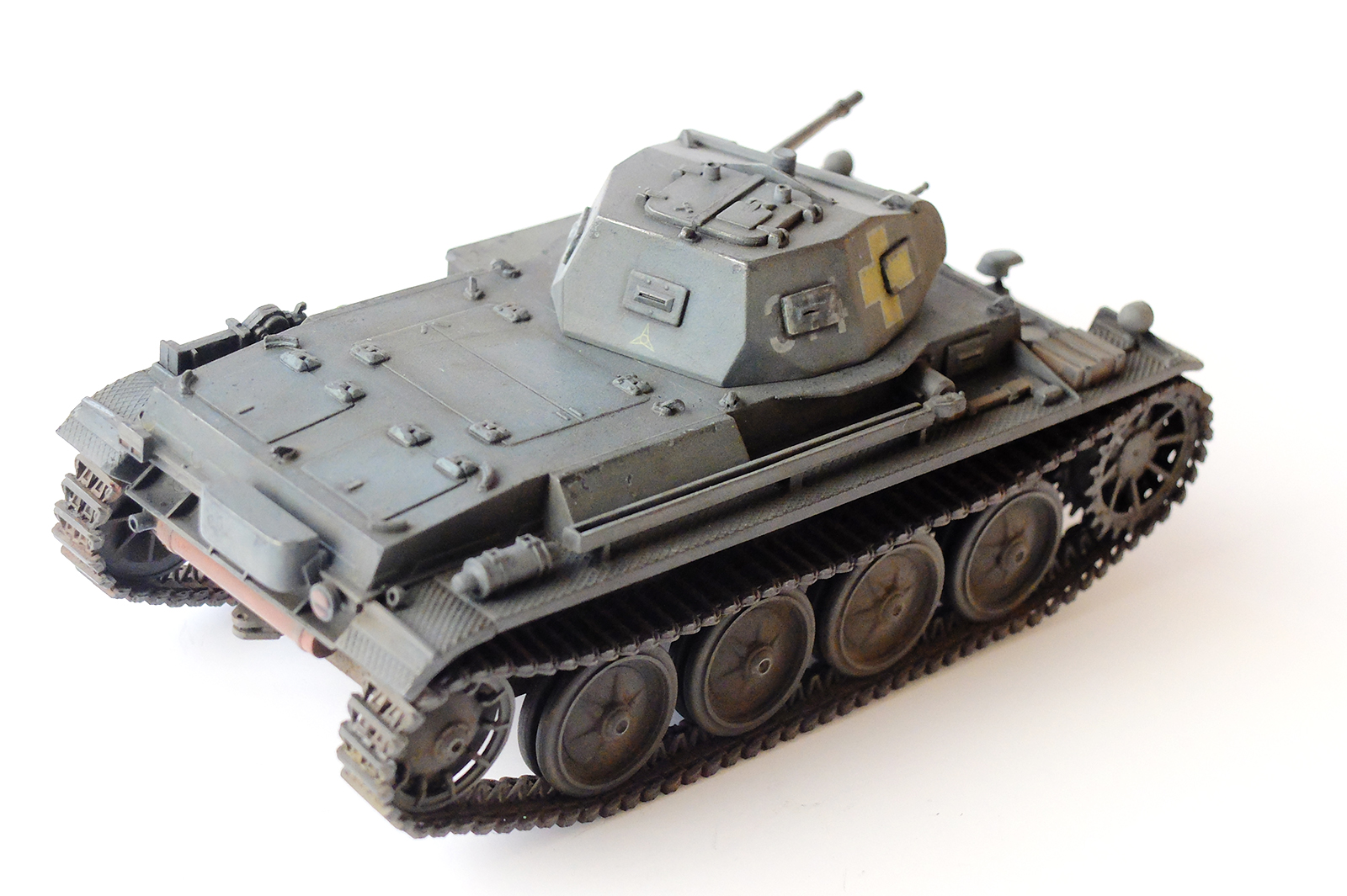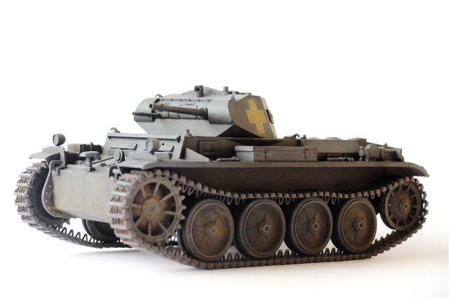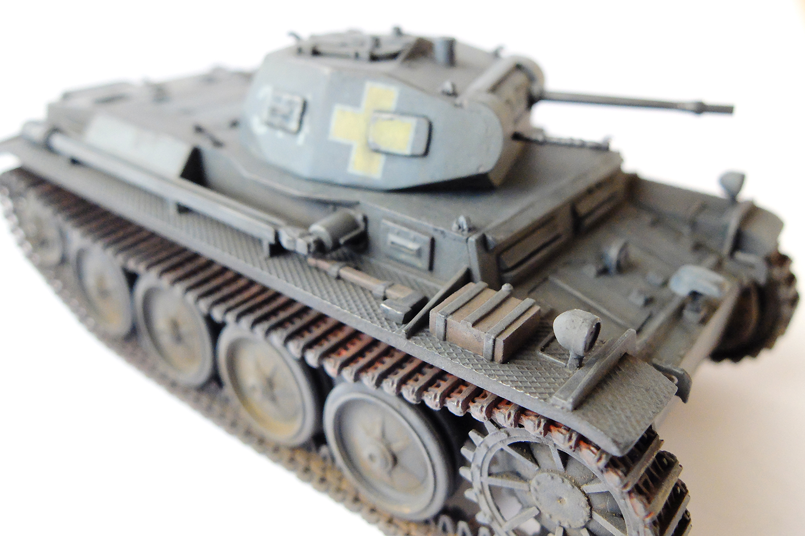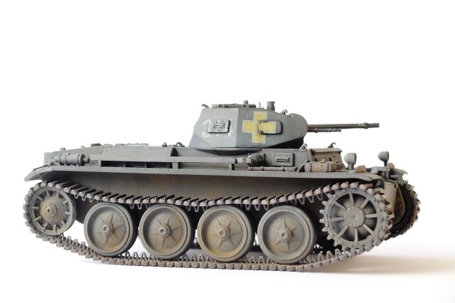 Можно сказать, что это моя первая модель, сделанная в осознанном возрасте. В детстве было собрано много танков и самолетов, но тогда я понятия не имел о технологиях правильной покраски, везеринга и тд. Наверное бы это так и осталось детским увлечением, если бы не мой товарищ, который посодействовал тому, что тема моделизма заинтересовала меня вновь. Нашел коробку с несобранным танком, который пролежал 15 лет на полке и решил собрать его уже по науке, так сказать. Посмотрел видеоуроки, немного разобрался в технологиях и приступил. На сборку ушло около 6 месяцев с перерывами. Решил уделить внимание именно технологиям покраски, потому на матчасть прошу не обращать внимания. Сразу решил опробовать все этапы покраски модели: прешейдинг, фильтры, везеринг, смывку, нанесение сколов и грязи. Что-то получилось более-менее достойно, что-то не вышло совсем. Из дополнений сделал только проводку к фарам и рассверлил стволы.