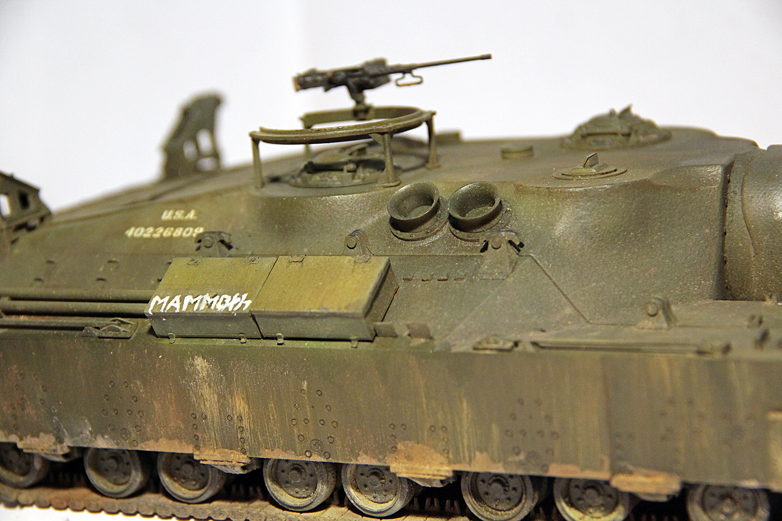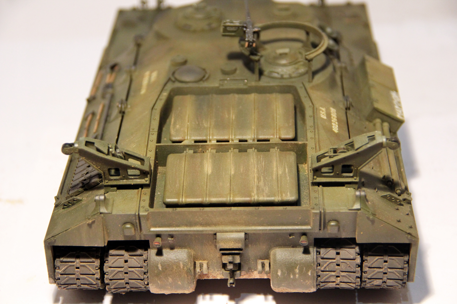 Мне вот понравилось. Честно. Постараюсь объяснить почеиу: данная машина, насколько я помню, сейчас реставрируются, а до этого стояла на постаменте в каком-то из музеев в США, не помню где. Так вот. Модель производит впечатление экспоната, за которым ухаживают и периодически подкрашивают, поэтому модуляция, тонировка и сколы на такой машине нужны по-минимуму. Что автор и сделал. Но тогда бы и гусеницы в парадный вид привести... В общем, случилось чудо и машина своим ходом немного проехала до места реставрации.