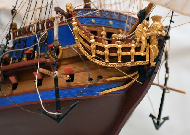 Модель красивая, понравилась, только якоря наверное надо было все таки закрепить как положено смотрится не очень, соответственно и веревка от томбуя как то внимание на себя оттягивает...ИМХО...