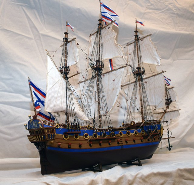 Для первой модели очень здорово и очень быстро! НО замечания по ворсистости и провису канатов, вантам и некоторым элементам рангоута. За флаги респект!