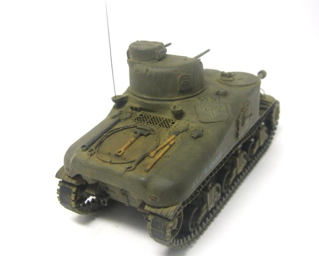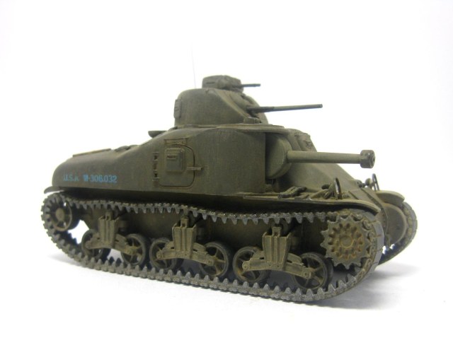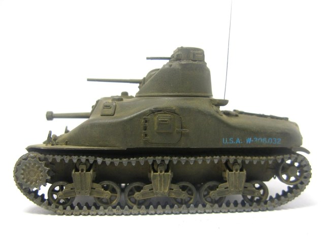 Брутальная железяка... Хорошо получилось. Я на "Стюарте" от Миража тоже столкнулся с слишком длинными гусеницами. На два трака укорачивал. Собрал стык на двух кусочках проволоки.