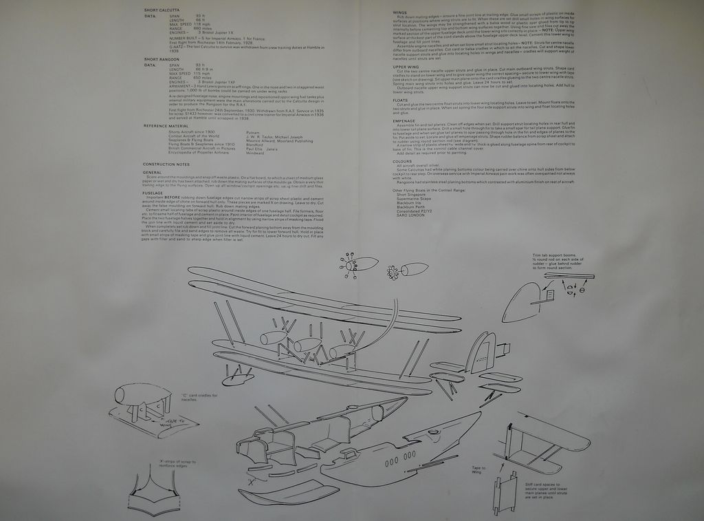 Вакуумформованная модель от фирмы Contrail упакована в коробку из прочного картона. В наборе заложена возможность сделать на выбор Calcutta или Rangoon. Детали отформованы на шести листах пластика. Качество формовки неважное. В наборе присутствуют деталировка из белого металла и профили (предположительно из полиэтилена). Ваку-фонарь выглядит не убедительно и его придётся выдавливать заново. Декали на два варианта самолёта смотрятся старыми и пожелтевшими, их так же лучше заменить. Инструкция довольно подробная, но не хватает информации по интерьеру.