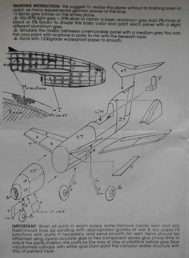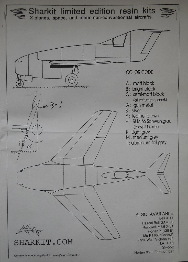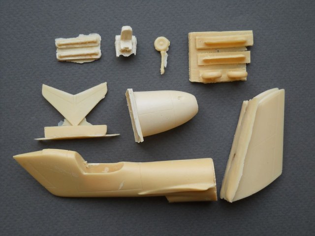 Модель из смолы от фирмы Sharkit в масштабе 1/72 упакована в картонную коробку с верхним открытием. Литьё весьма неважного качества. Фюзеляж дан одной деталью, причём кабина выполнена очень невнятным углублением. И что уж совсем забавно – отсутствуют подшассийные ниши и сопло (их придётся изготавливать самостоятельно). Ваку-фонарь выглядит слишком тонким и немного оплывшим, зато даётся в двух экземплярах. Декали отсутствуют. Инструкция по стилю исполнения традиционна для данной фирмы.