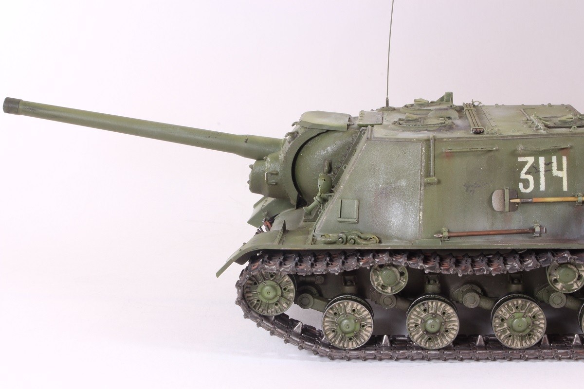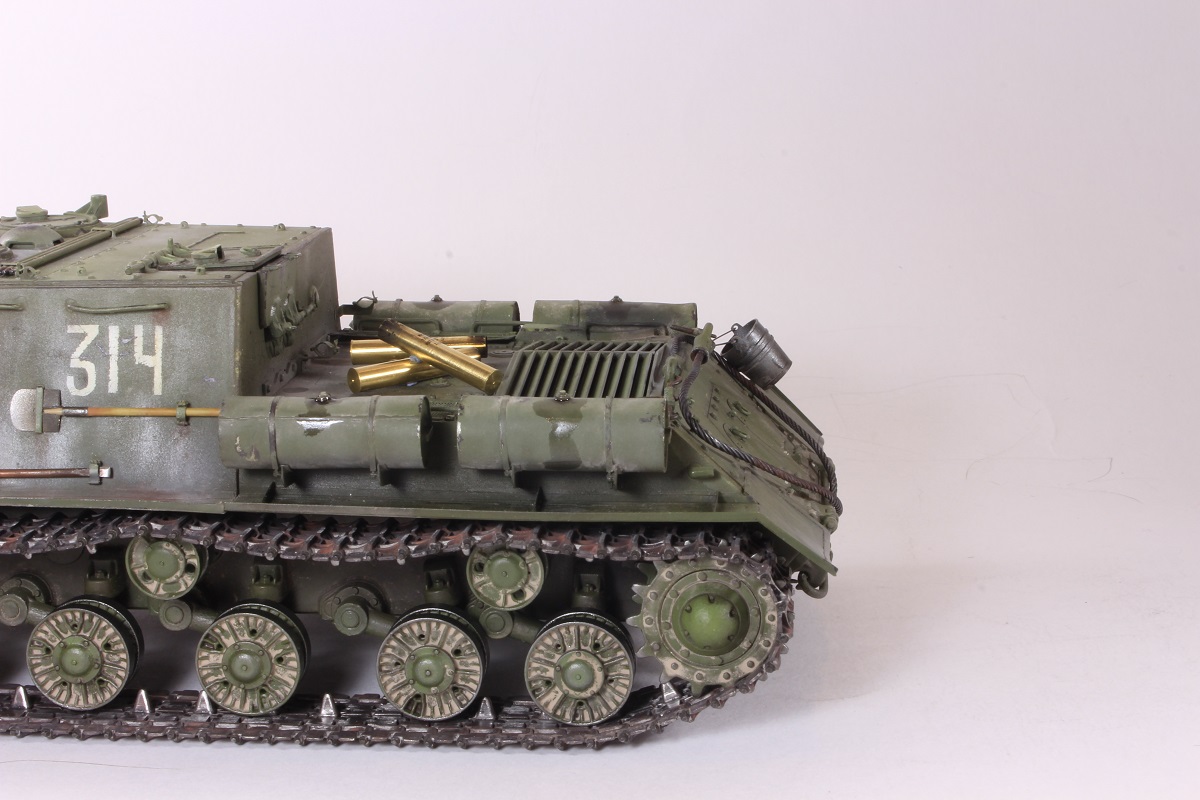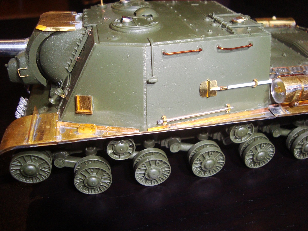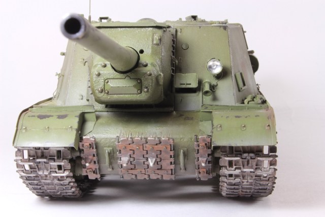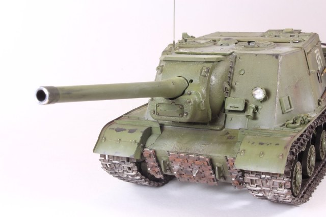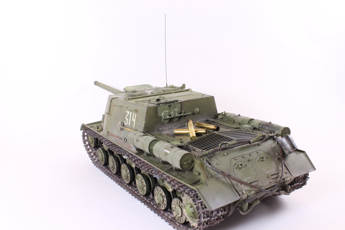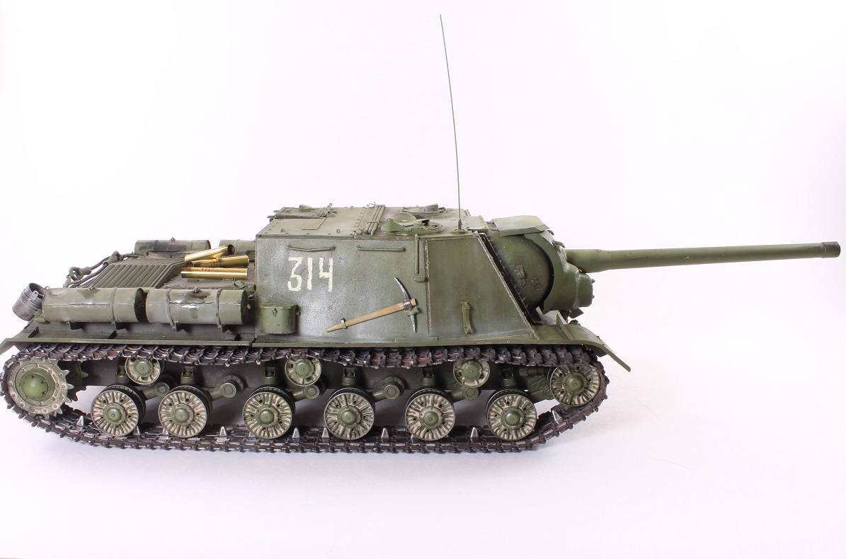 Михаил,хорошее исполнение! Но вот дедушка задал бы вам "стрекача". ИСУ-122 и СУ-122 это совершенно разные машины. А торсион люка заряжающего следовало бы удалить - это послевоенный атрибут.