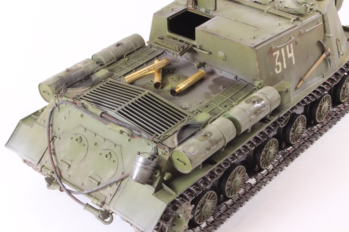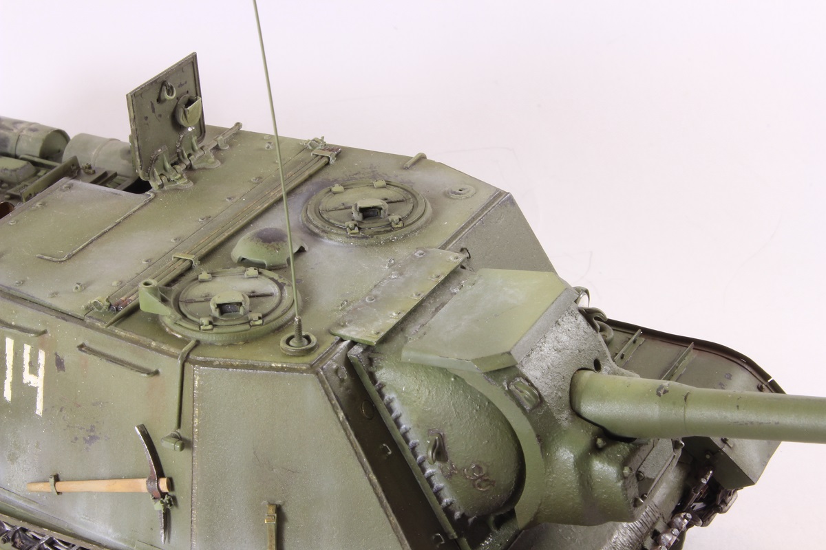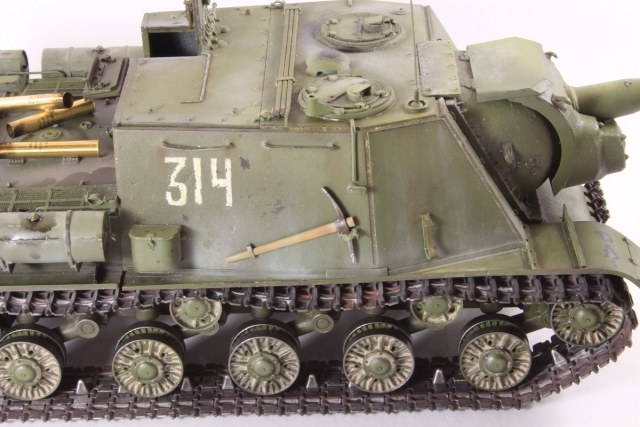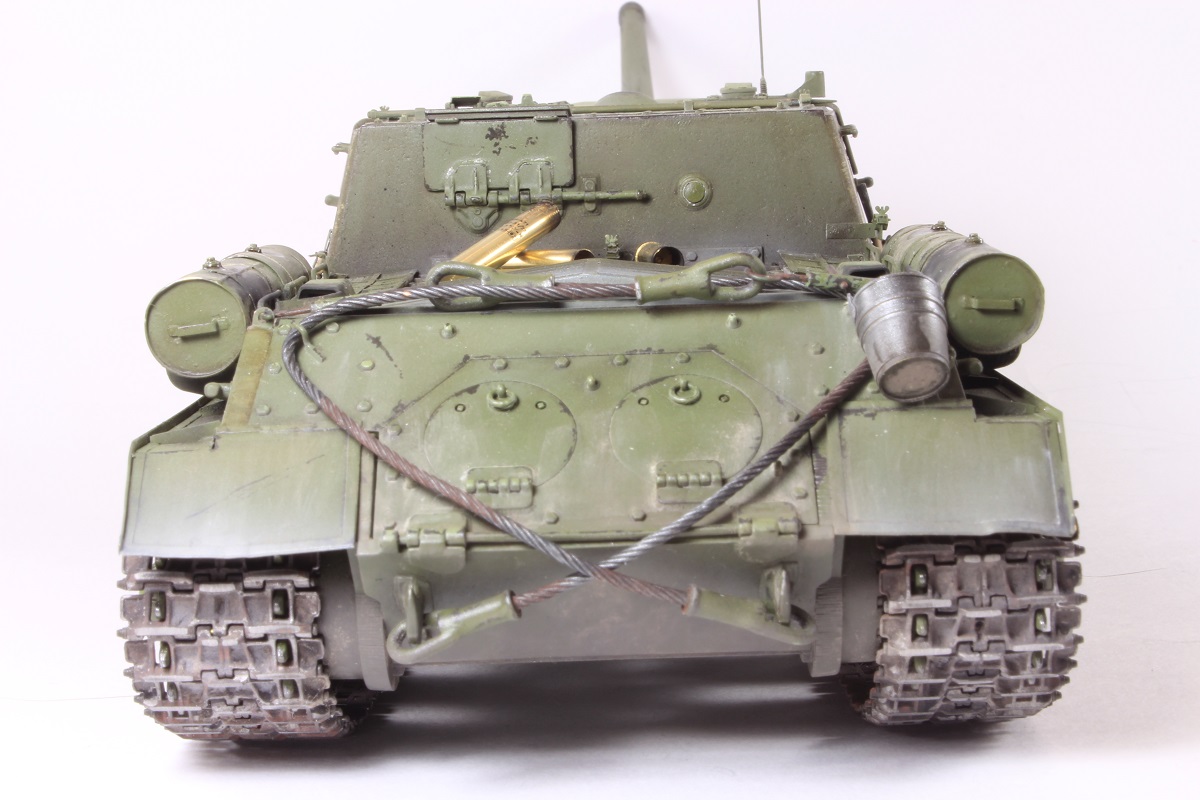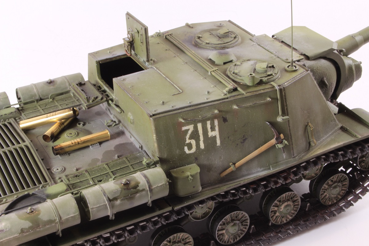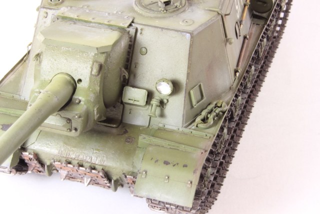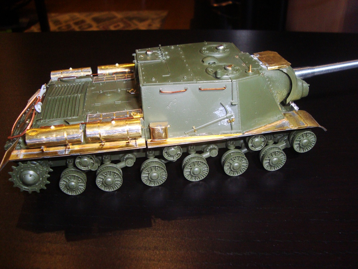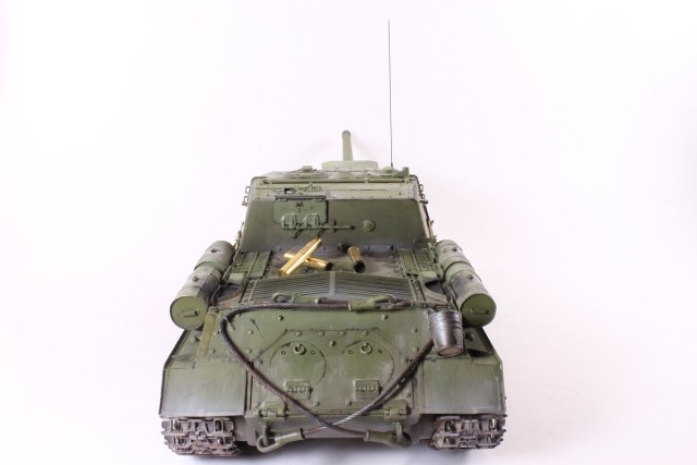 Михаил,хорошее исполнение! Но вот дедушка задал бы вам "стрекача". ИСУ-122 и СУ-122 это совершенно разные машины. А торсион люка заряжающего следовало бы удалить - это послевоенный атрибут.