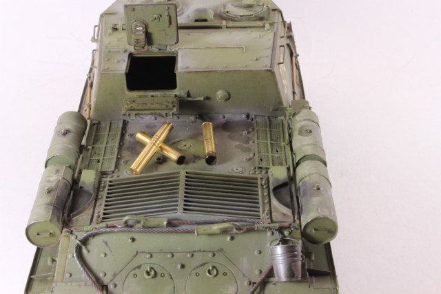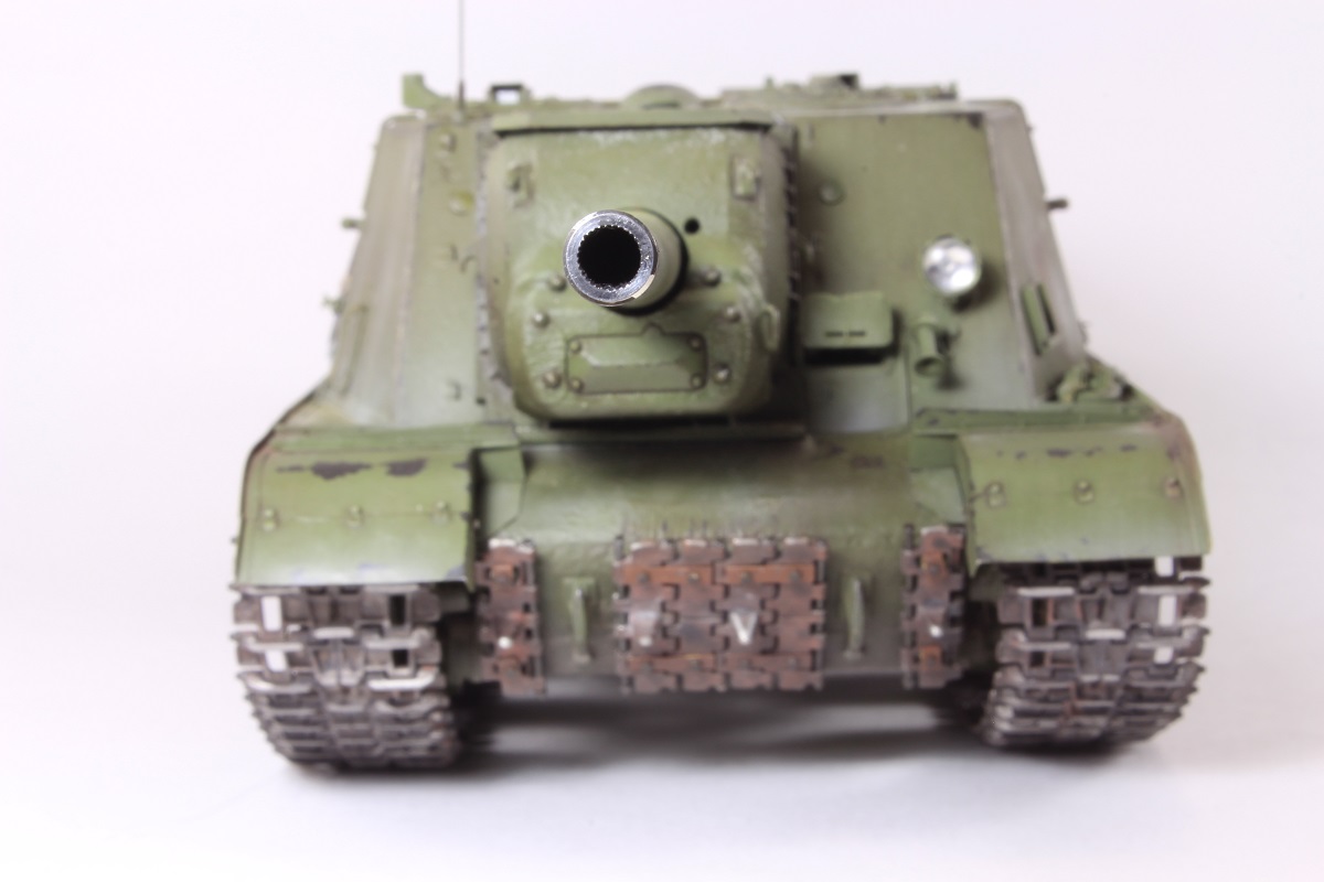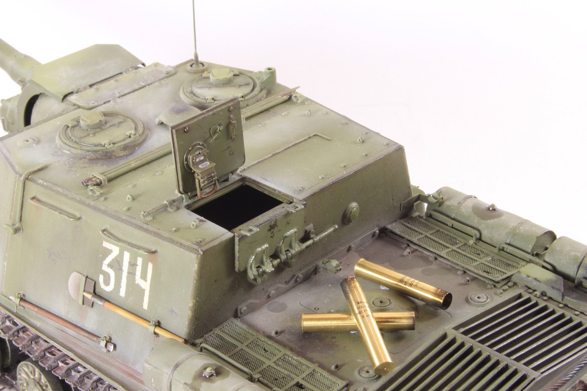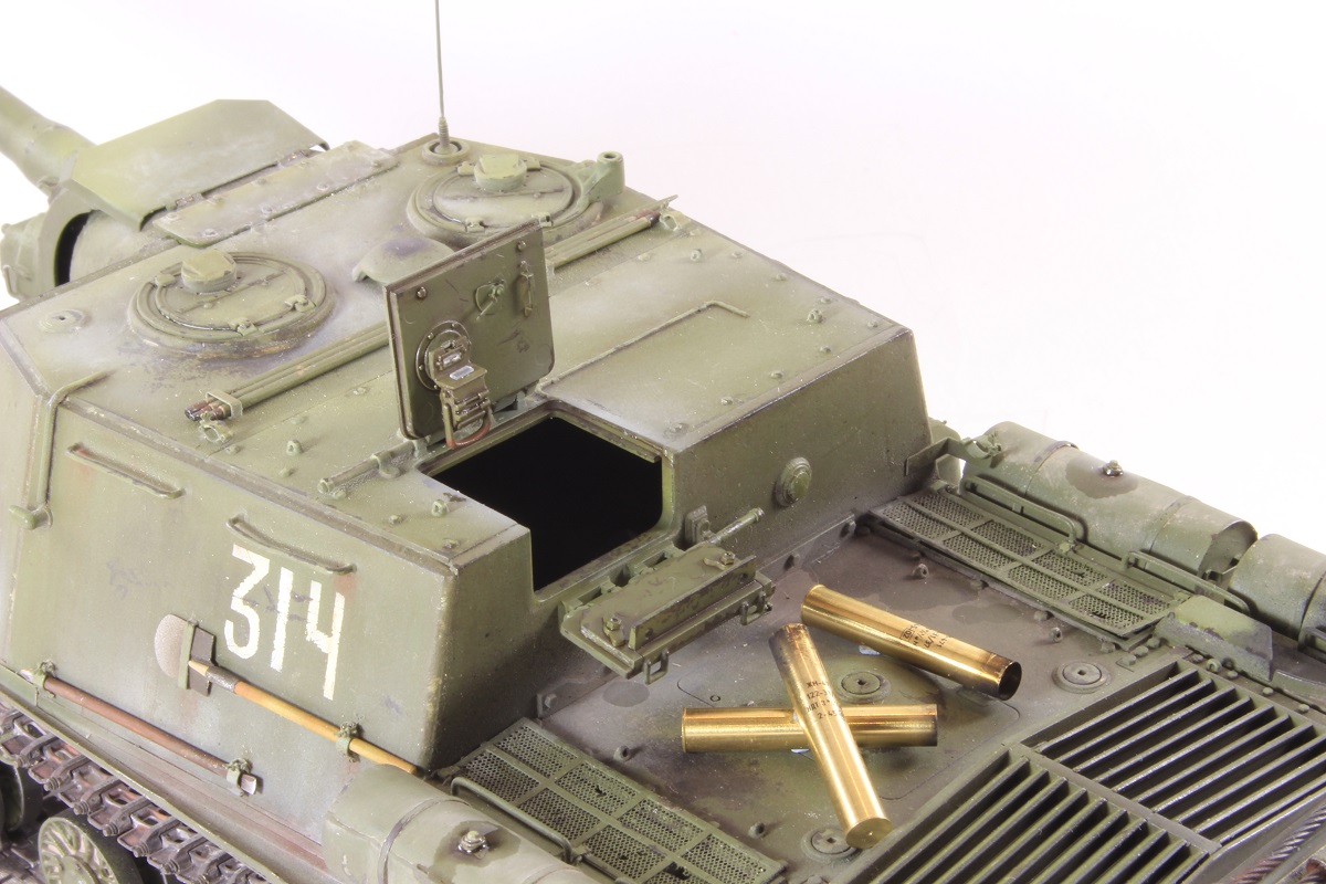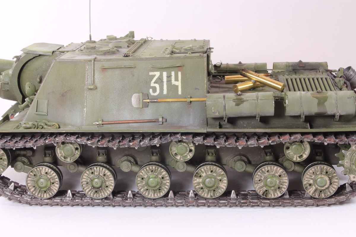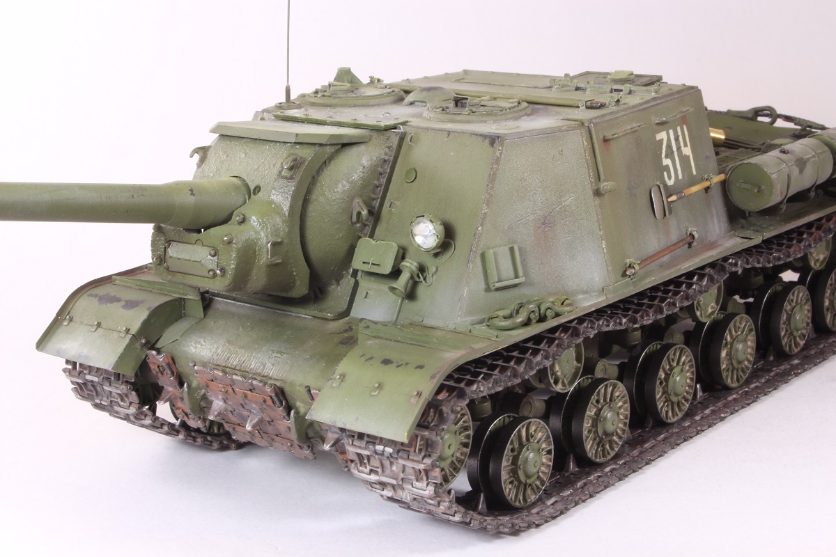 Михаил,хорошее исполнение! Но вот дедушка задал бы вам "стрекача". ИСУ-122 и СУ-122 это совершенно разные машины. А торсион люка заряжающего следовало бы удалить - это послевоенный атрибут.
