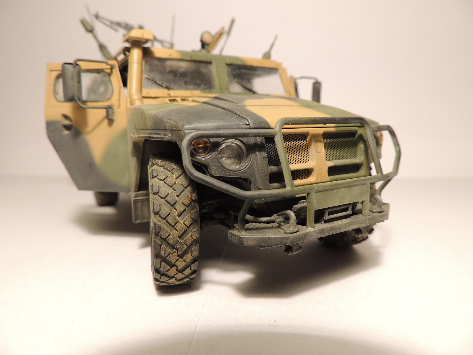 Машина собиралась из коробки, окрашивалась красками Tamiya, пылилось пигментами Мастер Пигмента, лаки, смывки.