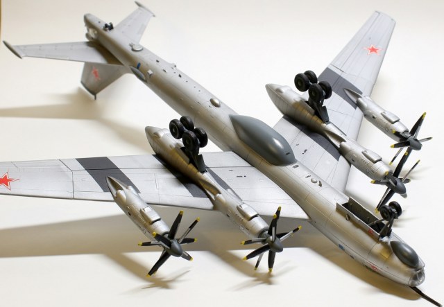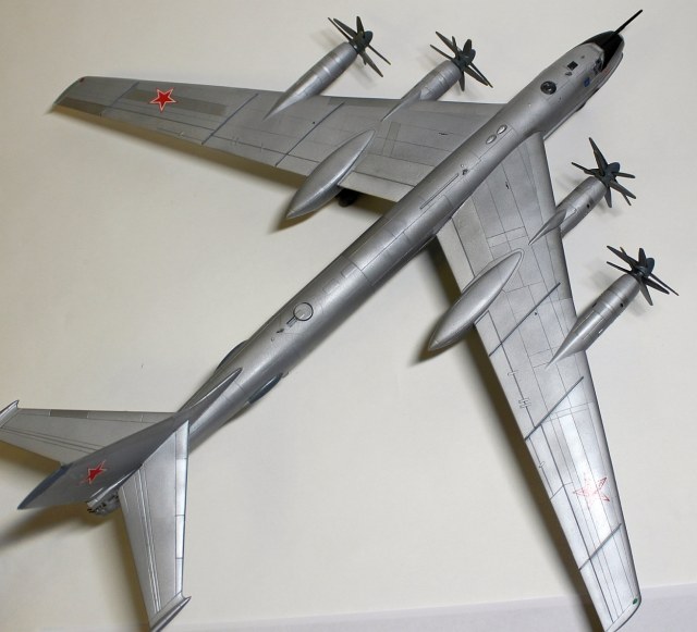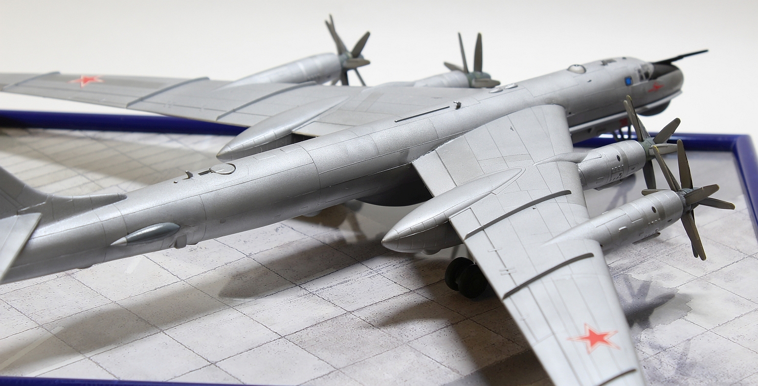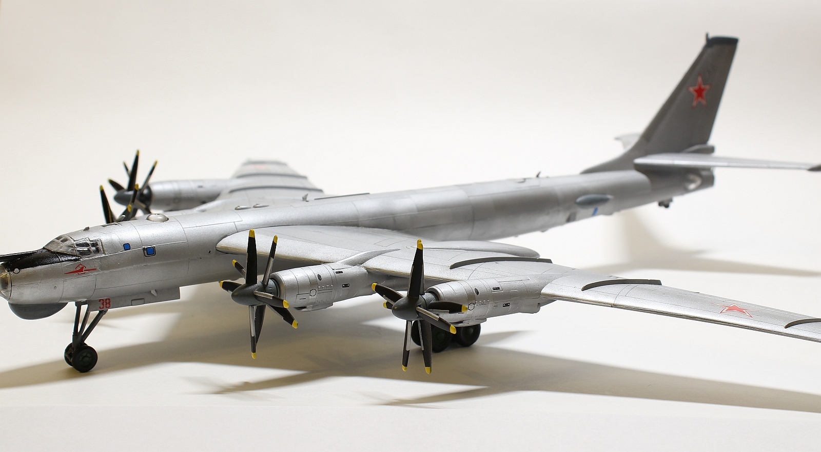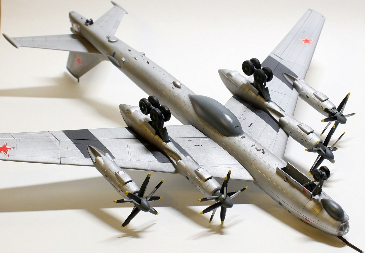Выставляю на ваш суд модель Ту-95РЦ, самолета дальней разведки и целеуказания для подводных лодок. Сборка велась исключительно изкоробки, по инструкции и в подарок :) Борт, по идее, советской морской авиации на 1968-й год, авиабаза Хороль.