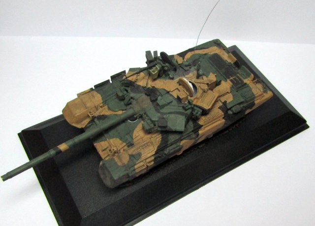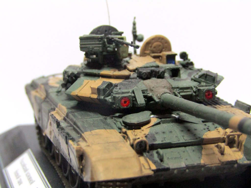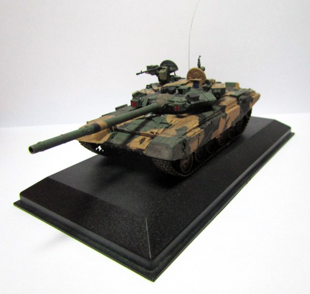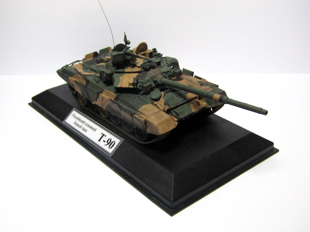 Модель собрана из коробки. База (защитный) изначально была покрашена эмалью revell. Позже было принято решение перекрасить в пятнистый окрас. Добавлены охристые пятна из тамиевского спиртового акрила и черные из акриловой сажи газовой. Смывка выполнена разбавленным маслом, на гусеницах присутствует пастель. В качестве подставки использовал основание от модели трактора МТЗ-50 в 43-м масштабе от Deagostini. Табличка напечатана на принтере и пропущена через ламинатор.