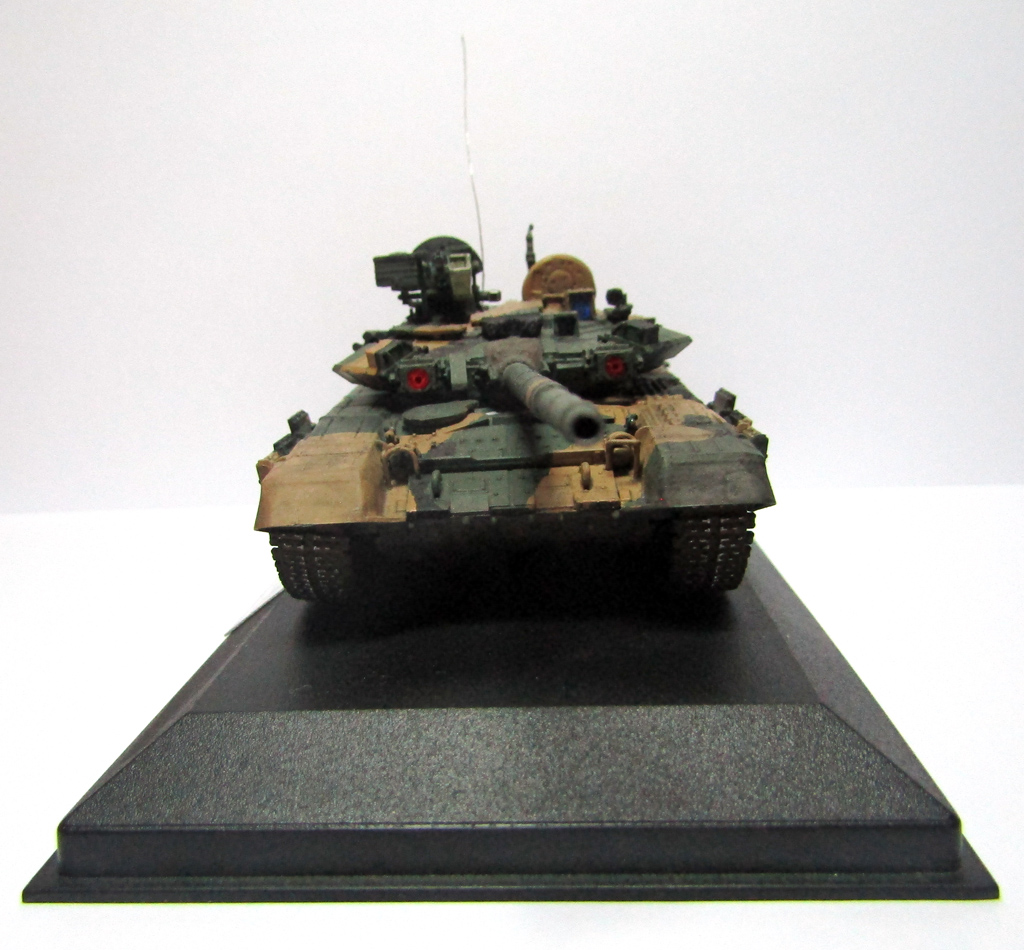 Модель слабовата для Галерей (ИМХО). Камуфляж вроде выглядит не плохо , но хорошо видны разводы и потеки смывки на модели, надо было лишнюю смывку убрать например ватной палочкой. Понравилась окраска гусянки , особенно грунтозацепов. Антенна не комильфо - она так дугой не гнется. В открытые люки надо бы экипаж посадить или ваще их закрыть , а то пустая нутрянка зияет. Вобщем еще есть чему поучится))) Так что удачи в будущих стройках !!!