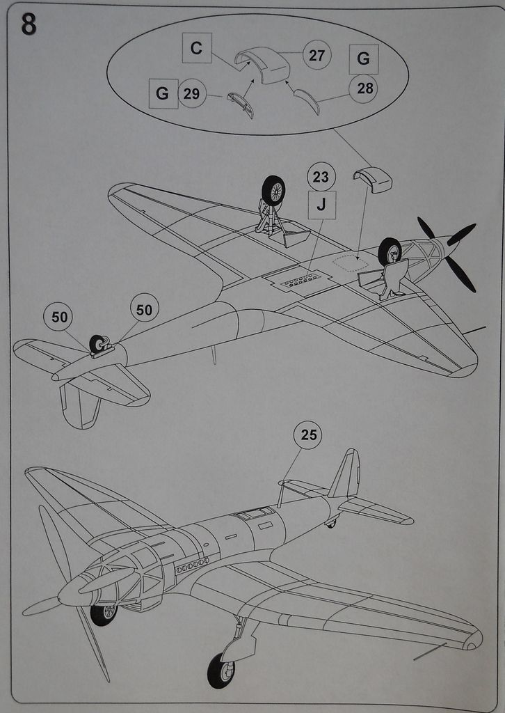 Модель от Valom в масштабе 1/72 (номер по каталогу 72110) упакована в картонную коробку с верхним открытием. Два литника с пластиковыми деталями отлиты по технологии «шорт-ран». В наборе предоставляется возможность собрать самолёт, проходивший испытания в Рехлине в 1938-39гг. Имеется плата с фототравлением, приборные шкалы даются на плёнке. Остекление кабины выполнено из пластика и выглядит неплохо. Декаль присутствует на один вариант и смотрится отлично. Инструкция достаточно информативна и наглядна, частично напечатана в цвете. Даётся таблица используемых красок по каталогам четырёх фирм и стандарту FS.