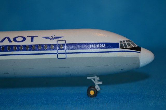 Выношу на ваш суд очередную свою работу, модель всем известного самолета Ил 62 от Звезды. По сборке вопросов не возникло, собиралась легко но долго в виду отсутствия свободного времени. Модель собрана полностью из коробки с небольшими доработками. А точнее БАНО и проблесковый маячок на брюхе. По расшивки прошёлся простым карандашом. Каюсь, не попал в цвет на дисках колес, видать колорист из меня никакой.