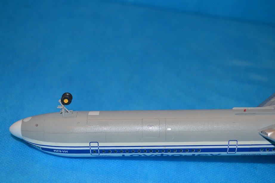 Иллюминаторы делаю следующим образом. Перед тем как вклеить иллюминаторы сначала грунтую а потом крашу борт. После чего вклеиваю остекление и склеиваю фюзеляж. Перед покраской заклеиваю окошки полоской скотча размером с иллюминатор. После покраски скотч снимаю и микронкой с водичкой обрабатываю поверхность, чтобы снять ступеньку, если она появилась. Ну а дальше уже декали.