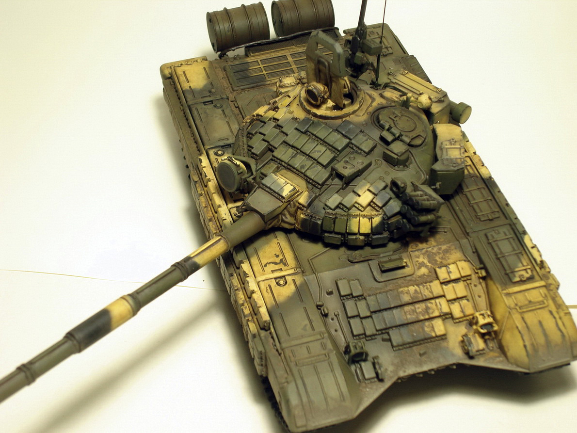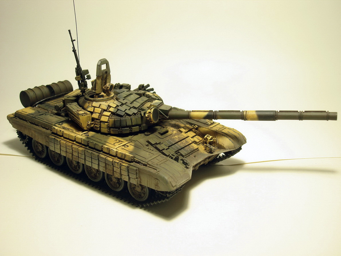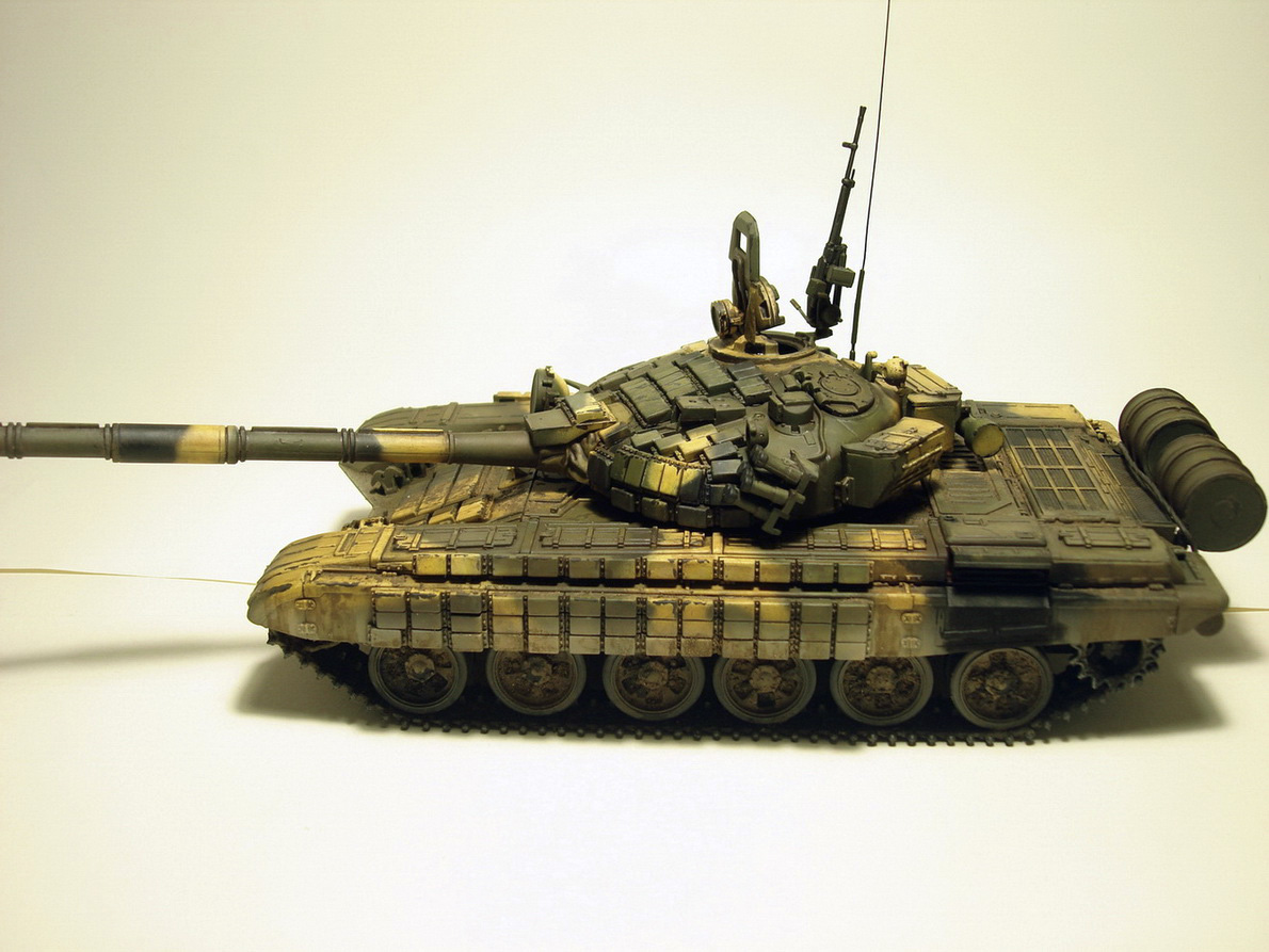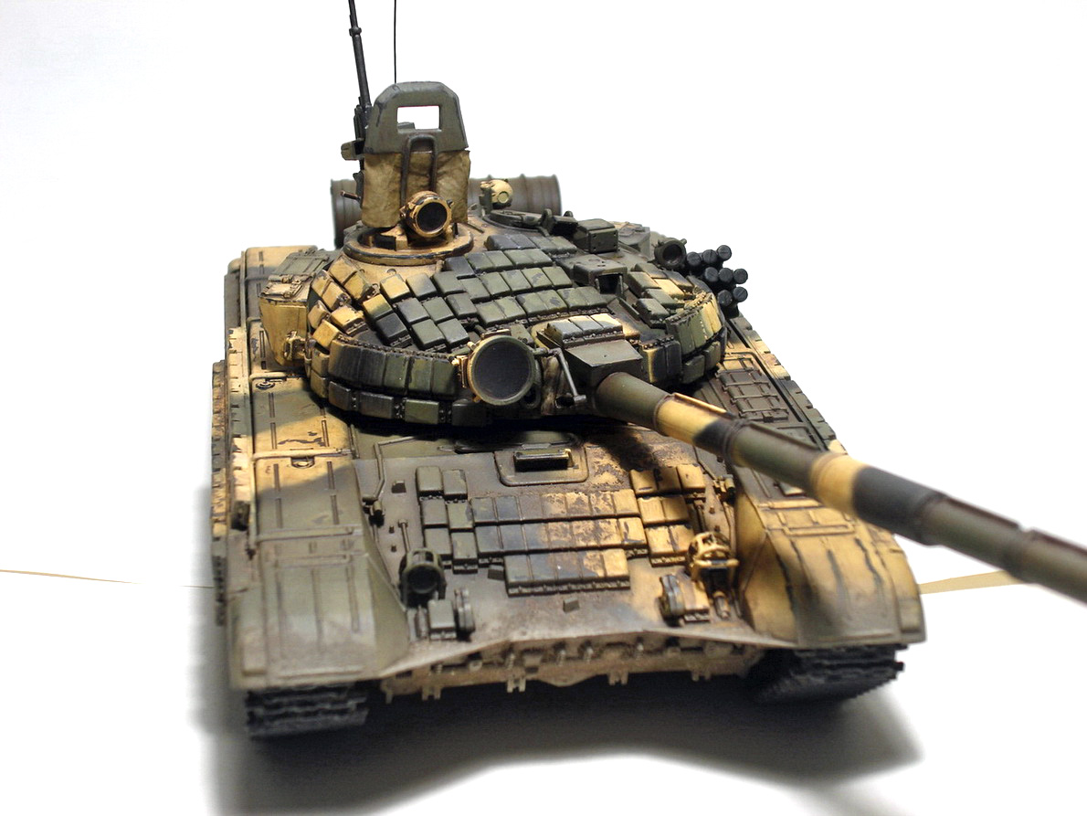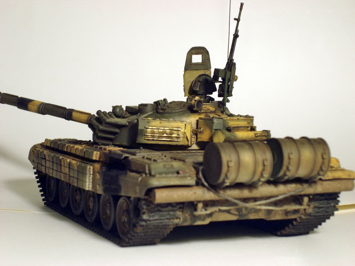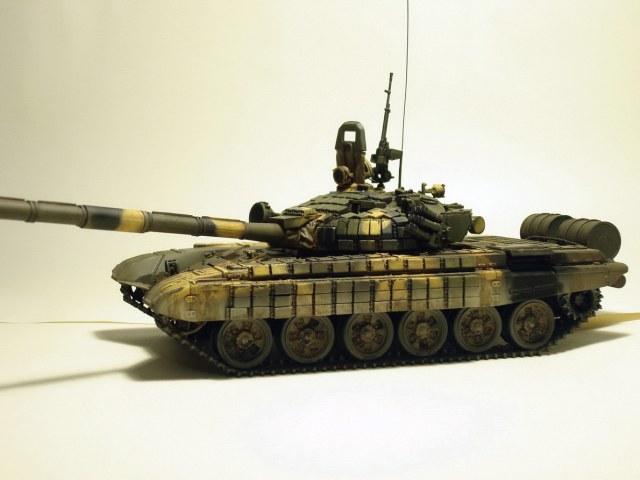 Модель была собрана несколько лет назад, первая после долгого перерыва(в детстве собирал модели), а именно с нее я начал заниматься моделизмом серьезно, собрал-поставил, а красить все не решался, собрал еще несколько моделей, некоторые выставлены на КАРОПКЕ. Купил Аэрограф компрессор и начал красить, сначала БТР-80, теперь вот 72ку, короче, все пока тренируюсь. Руки не дошли до шпаклевки, да и не было у меня ее))) Все косяки вижу, в будущих моделях учитываю. Спасибо за отзыв!!!