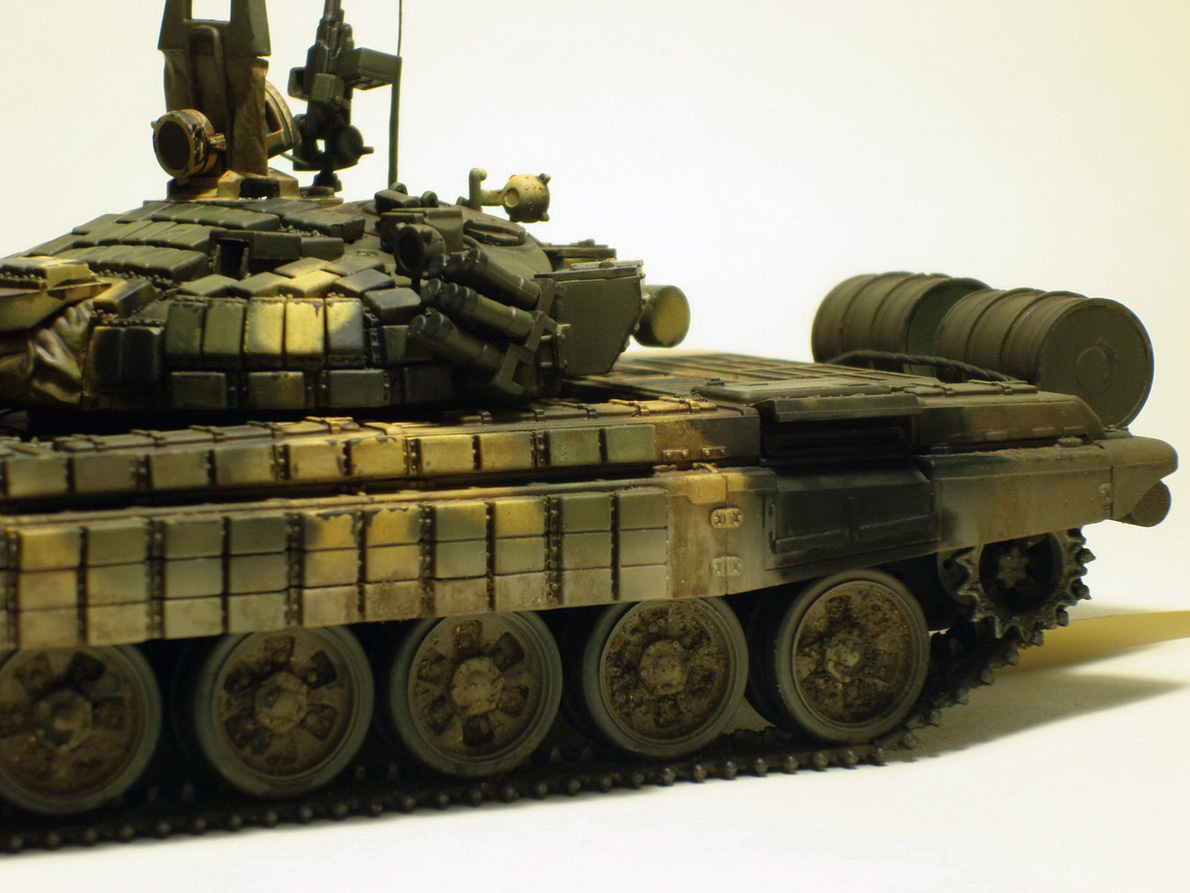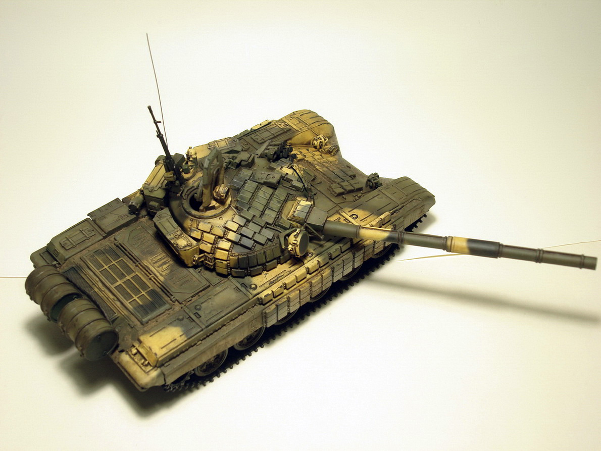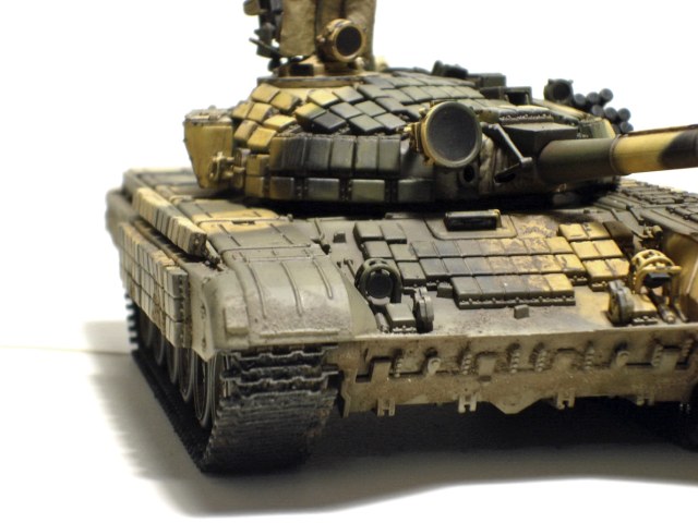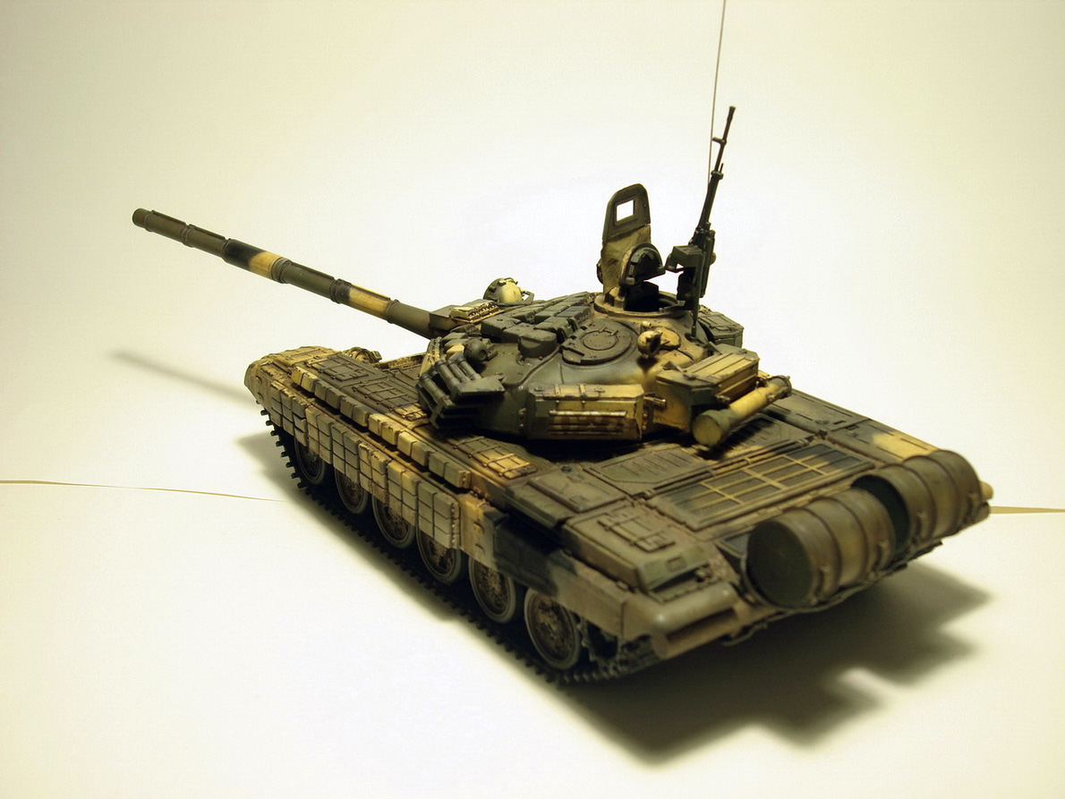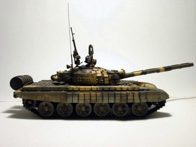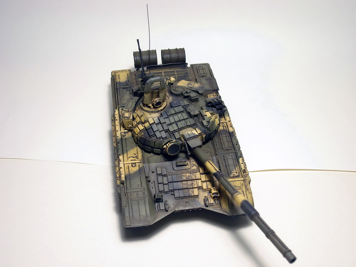 Модель была собрана несколько лет назад, первая после долгого перерыва(в детстве собирал модели), а именно с нее я начал заниматься моделизмом серьезно, собрал-поставил, а красить все не решался, собрал еще несколько моделей, некоторые выставлены на КАРОПКЕ. Купил Аэрограф компрессор и начал красить, сначала БТР-80, теперь вот 72ку, короче, все пока тренируюсь. Руки не дошли до шпаклевки, да и не было у меня ее))) Все косяки вижу, в будущих моделях учитываю. Спасибо за отзыв!!!