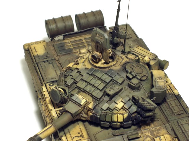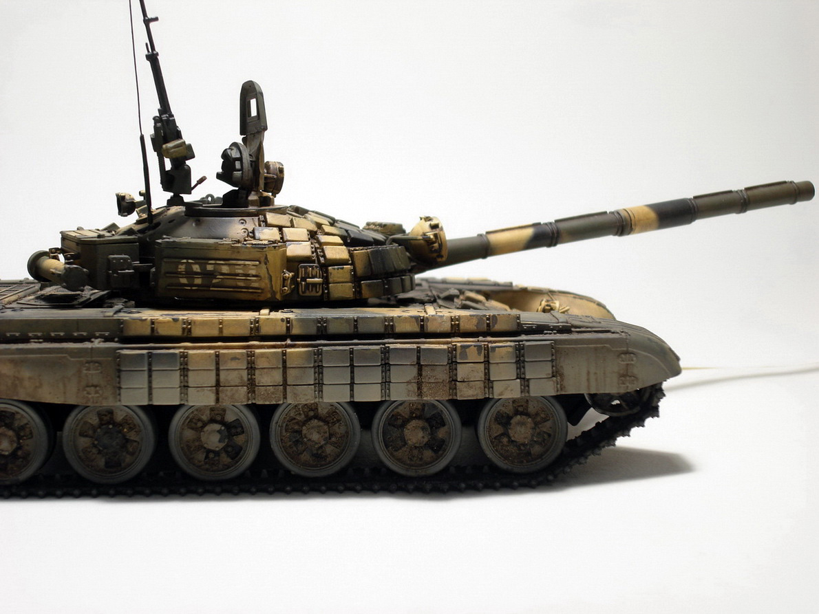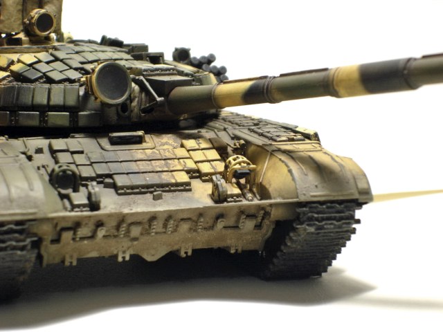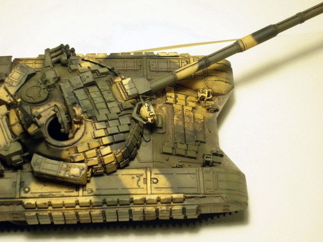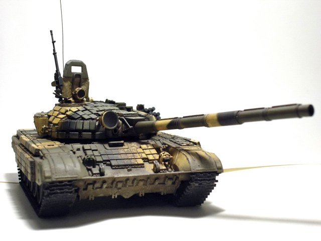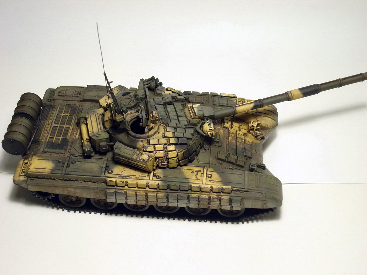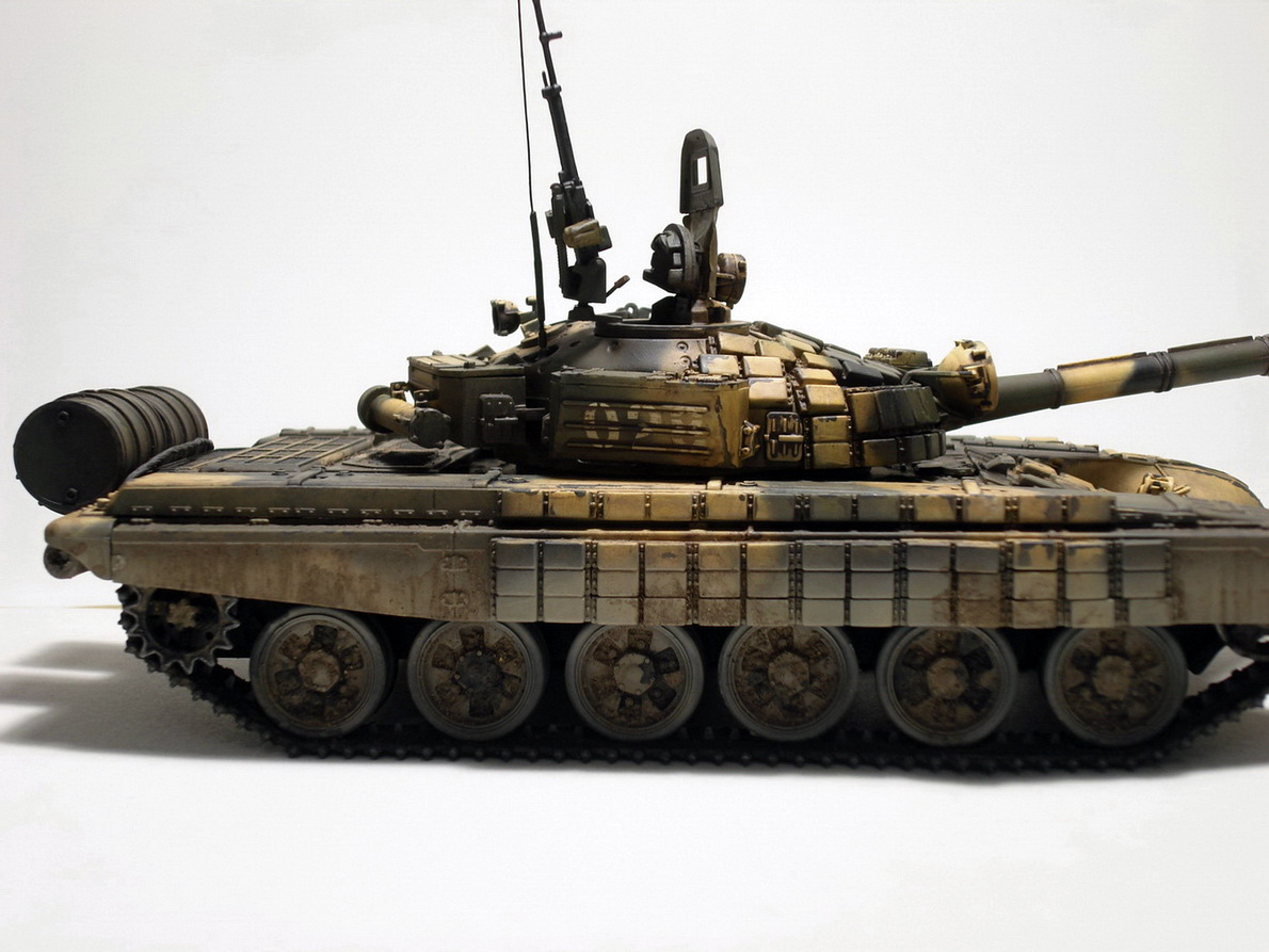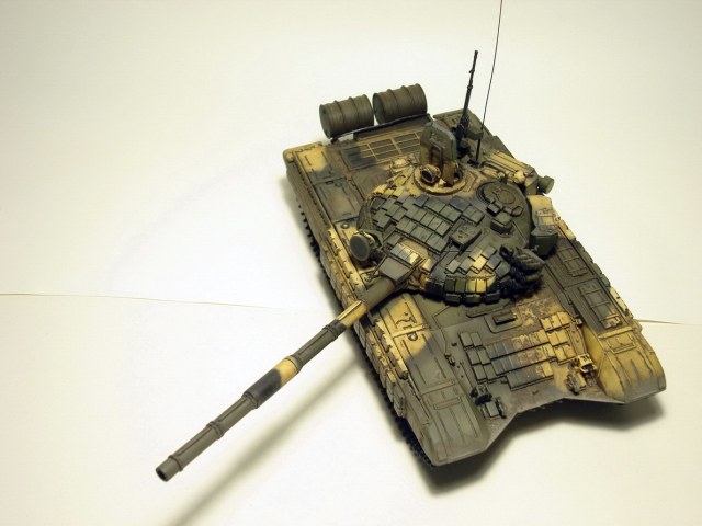 Модель была собрана несколько лет назад, первая после долгого перерыва(в детстве собирал модели), а именно с нее я начал заниматься моделизмом серьезно, собрал-поставил, а красить все не решался, собрал еще несколько моделей, некоторые выставлены на КАРОПКЕ. Купил Аэрограф компрессор и начал красить, сначала БТР-80, теперь вот 72ку, короче, все пока тренируюсь. Руки не дошли до шпаклевки, да и не было у меня ее))) Все косяки вижу, в будущих моделях учитываю. Спасибо за отзыв!!!