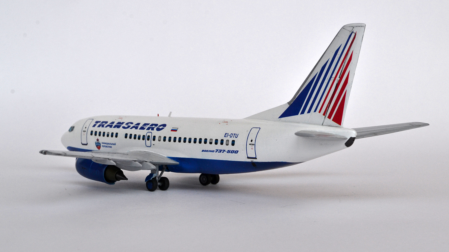 Но тем не менее, я очень захотел себе на полку классику в ливрее Трансаэро, а при всех минусах ВЭ - он стоит недорого и есть в любом модельном магазине. Понятно, что на конкурсы с такой моделью не пойдешь, но что есть - то есть.