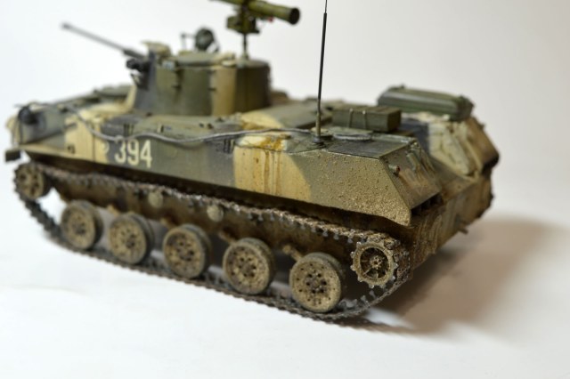 Два момента, на БМД имеется гидравлический механизм натяжения гусеницы, при таком провисе при поворотах машина будет "разуваться". И запасной бак расположен на воздухозаборнике системы охлаждения, т.е. правый масло-радиатор будет перегреваться.