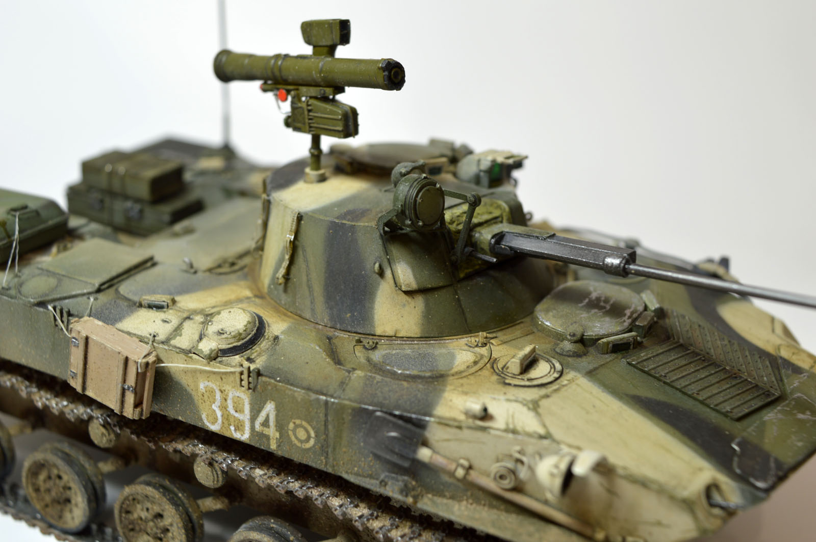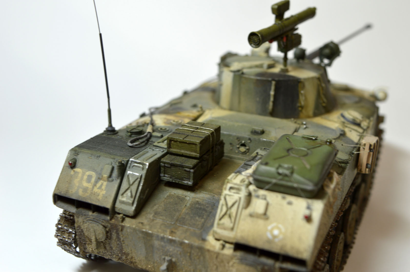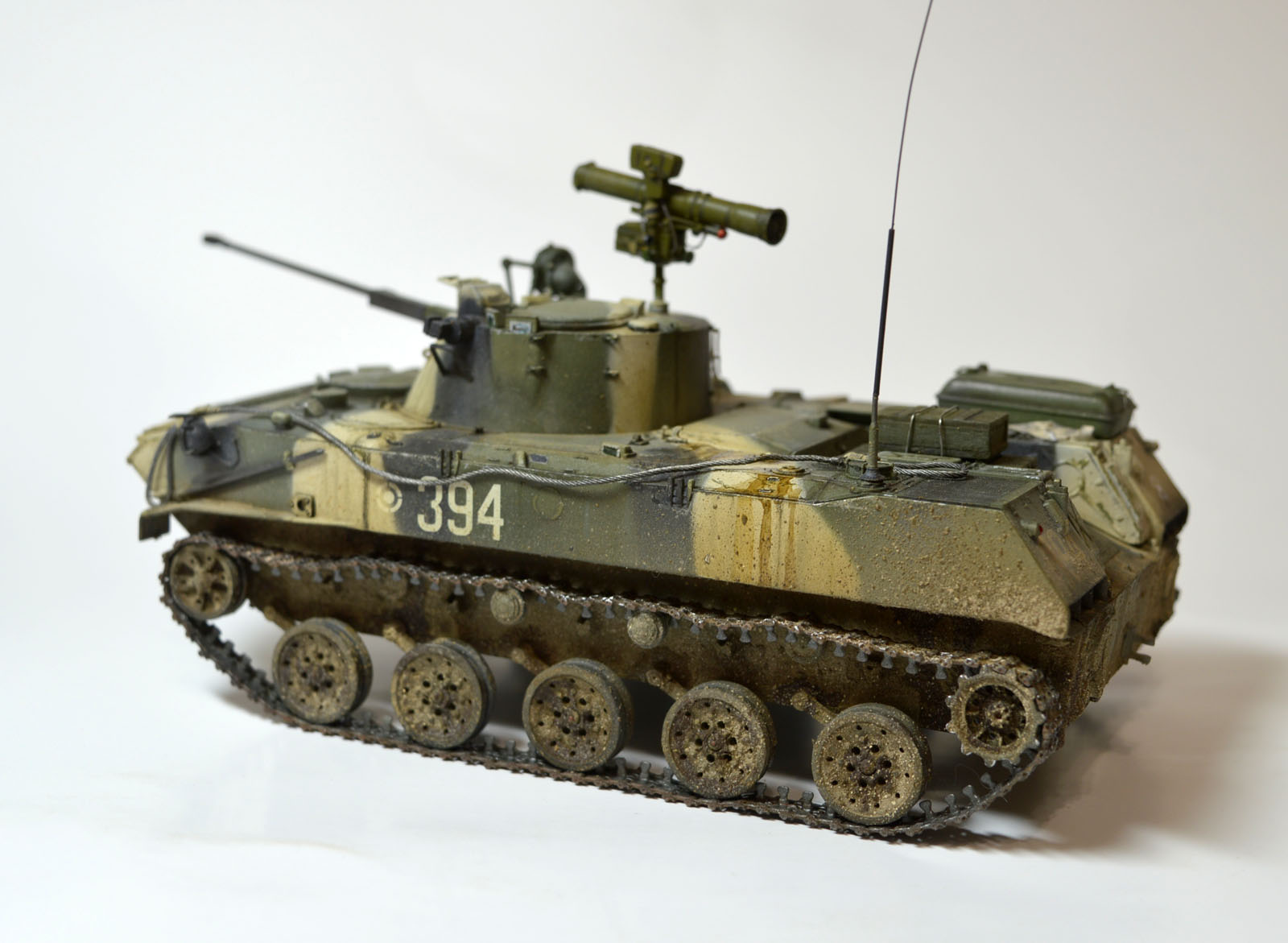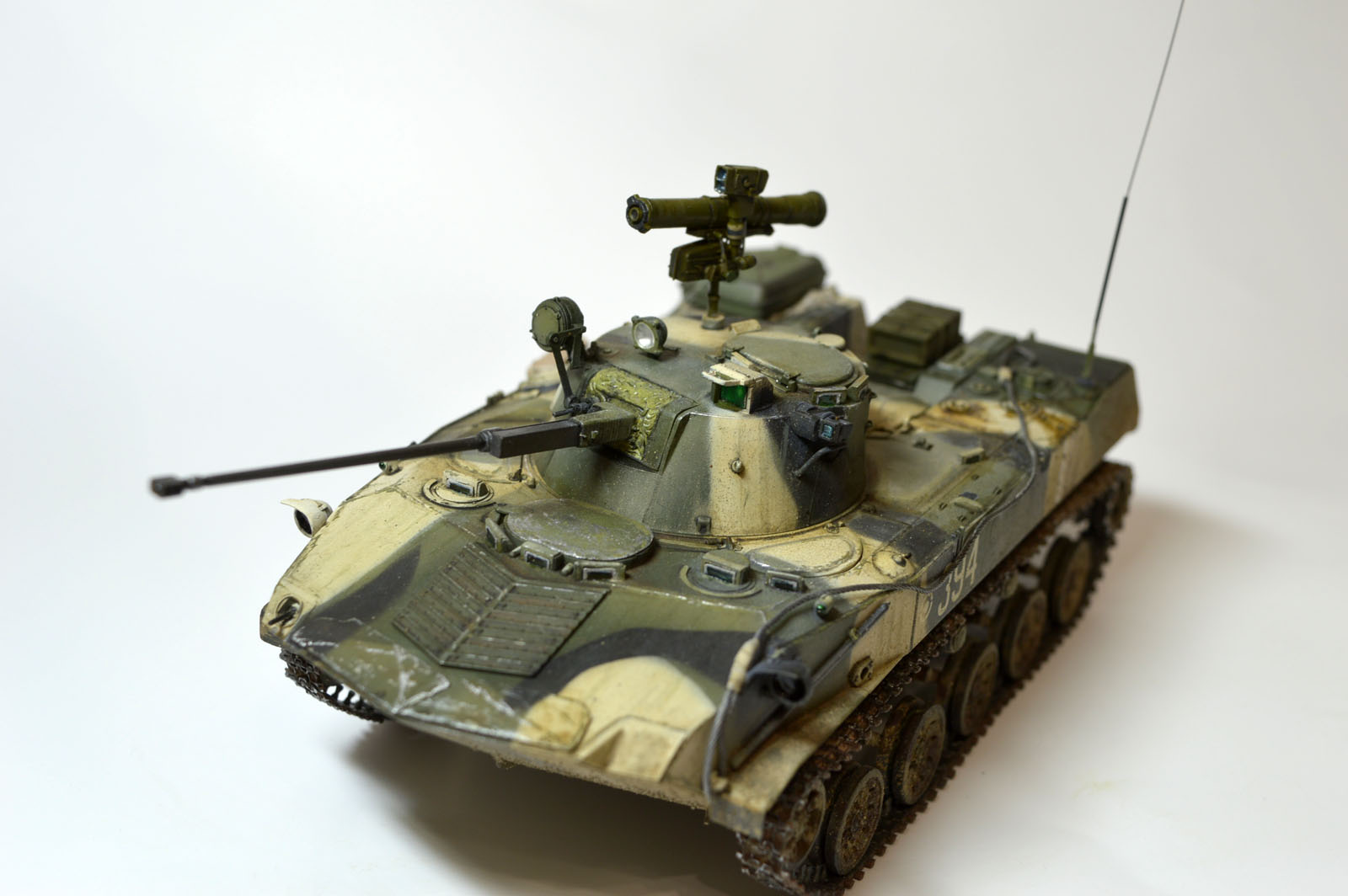 Старенький набор от Звезды. Немного доработал его. Сделал проводку к ПТУРу и фарам, антенный ввод от модел поинта, немного доработал крепление инфракрасного прожектора и сам прожектор заменил. Окрашивал все акрилом от тамии, затем смывка и загрязнение химией от АК интерактив. Траки тоже заменил на смоляные от мастер клаба. Приятного просмотра.