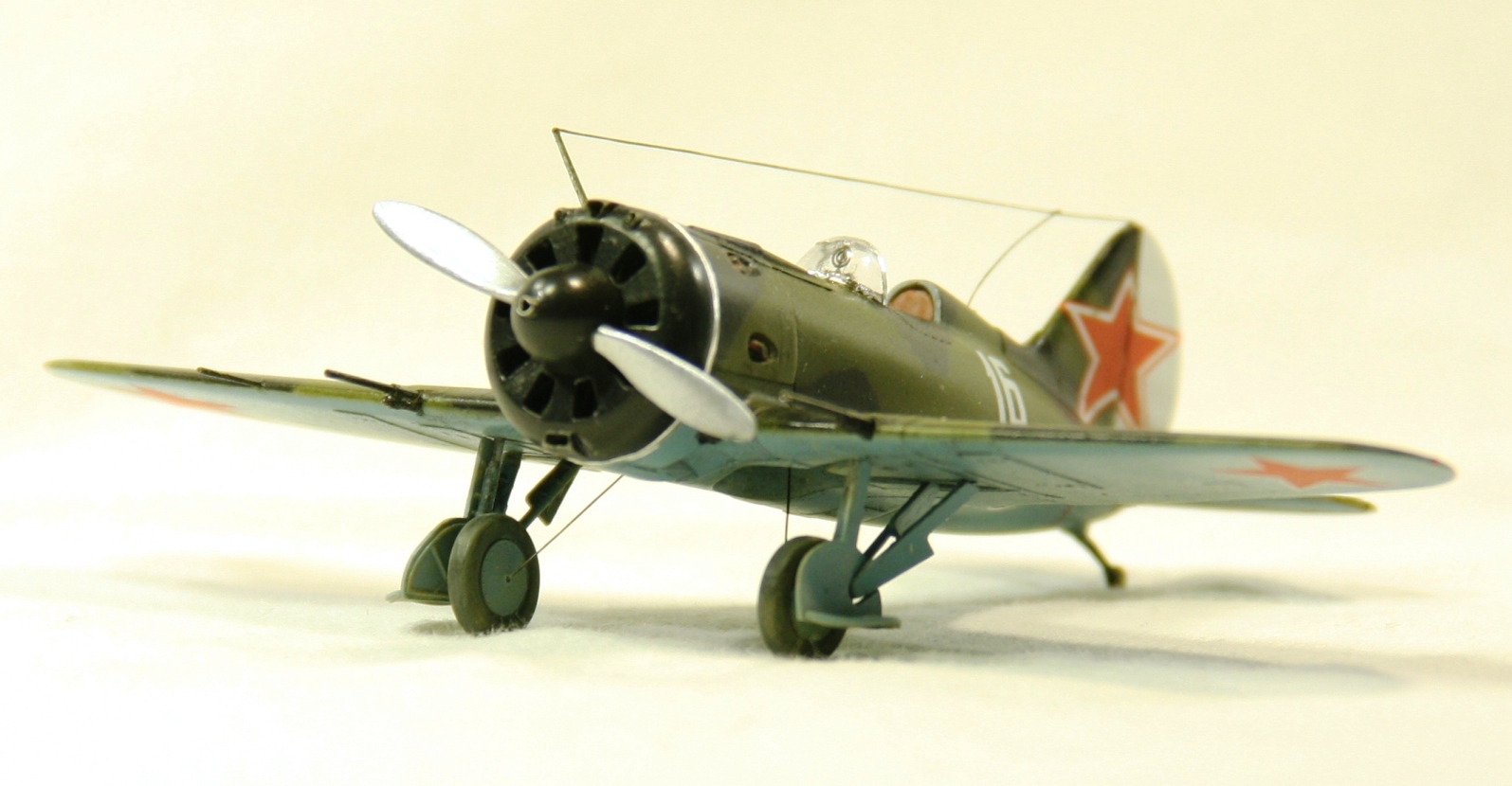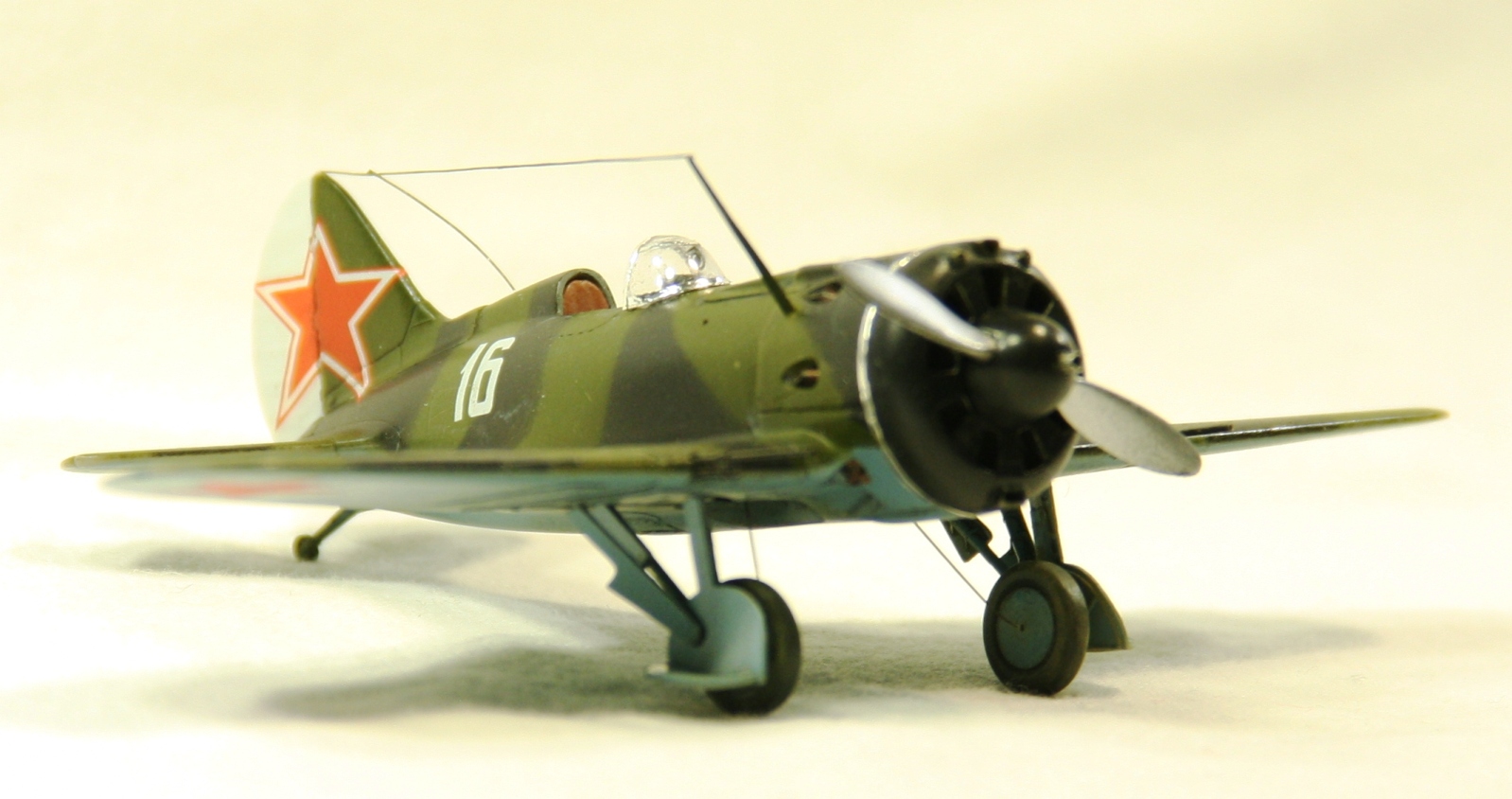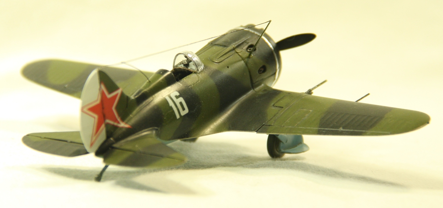 И-16 лейтенанта Ломакина, июль 1941 г. Схему расположения пятен камуфляжа брал из журнала «Авиаколлекция» выпуск «Окраска и обозначения самолетов советских ВВС 1941-1945гг.», совместив её со схемой, которую дает Бегемот. Конечно, историчность такой окраски, (именно в период боевых действий) вызывает сомнения, особенно гигантская звезда на киле, и белый руль направления. Бегемот приводит вид музейного экспоната. Я все же остановился на этом варианте, т.к. это единственный у Бегемота тип 28 в камуфляже, а сделать хотелось именно камуфлированный.