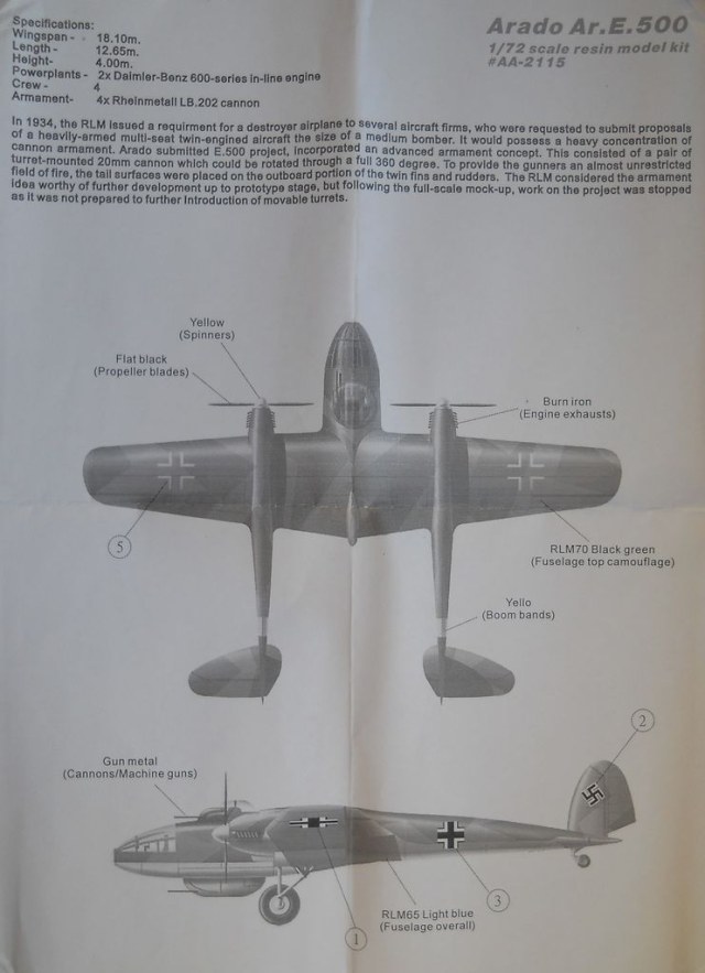 Немецкий тяжёлый истребитель Arado Ar.E.500 – проект 1936 года. Был построен полноразмерный макет перед самым прекращением работ над проектом.