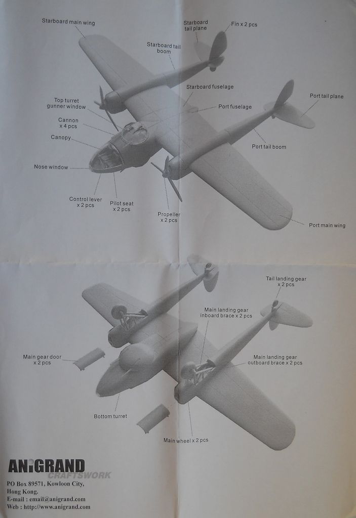 Модель из смолы от фирмы Anigrand Craftswork в масштабе 1/72 (номер по каталогу 2115) упакована в картонную коробку с верхним открытием. Качество литья среднее, присутствуют незначительные дефекты. Расшивка местами неаккуратная. Традиционно беден интерьер. Фонари из прозрачной смолы смотрятся неважно – есть пара мелких пузырьков. Декали даются на один фантазийный вариант самолёта и выглядят неплохо. Инструкция крайне лаконична.