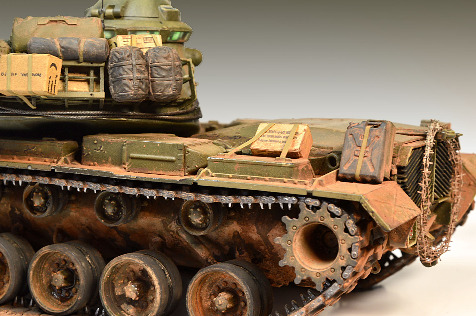 Модель в целом понравилась. Все собиралось отлично. Жирный минус за виниловые гусеницы. Модель полная искоробка. От себя добавил обвес. Окрашивал акрилом от Тамии и химия от АК интерактив, пигменты от Мастер пигмент. Вот вроде и все, приятного просмотра.