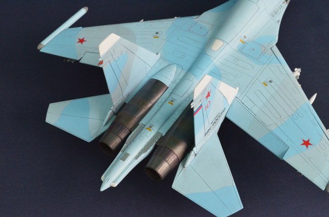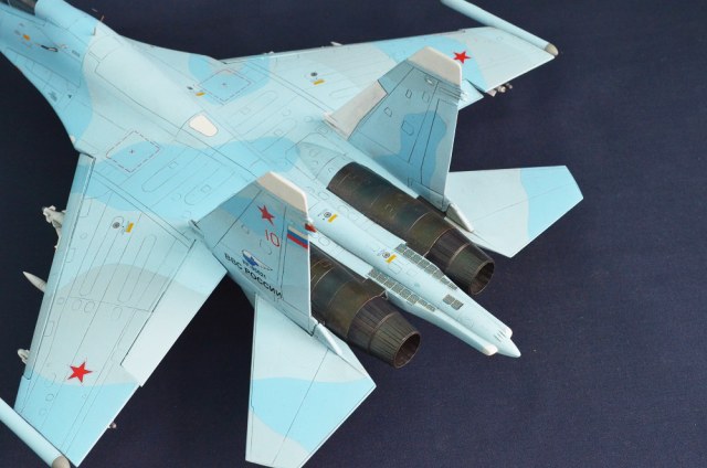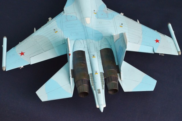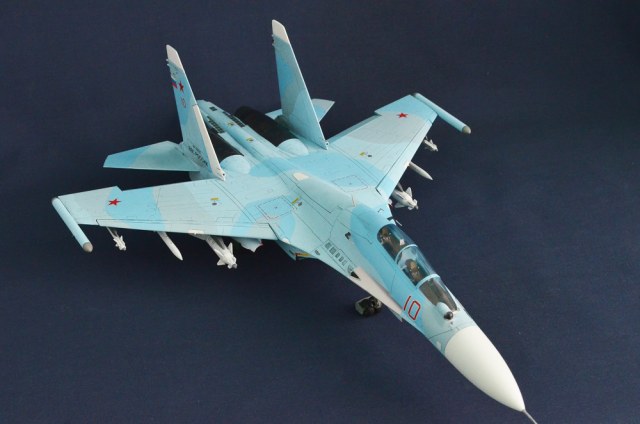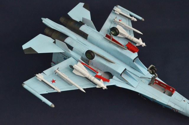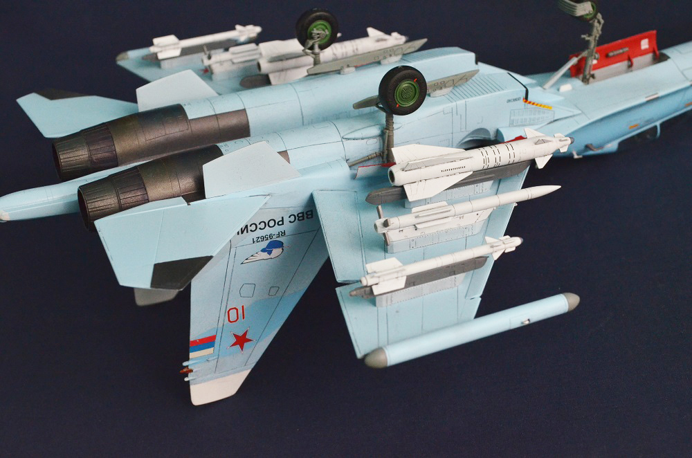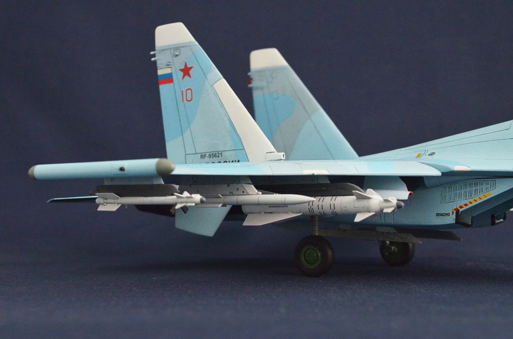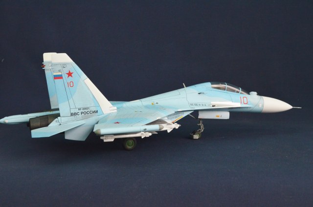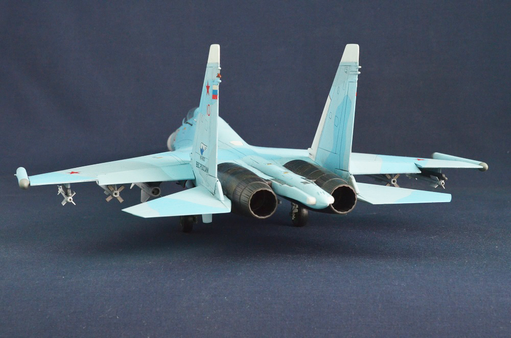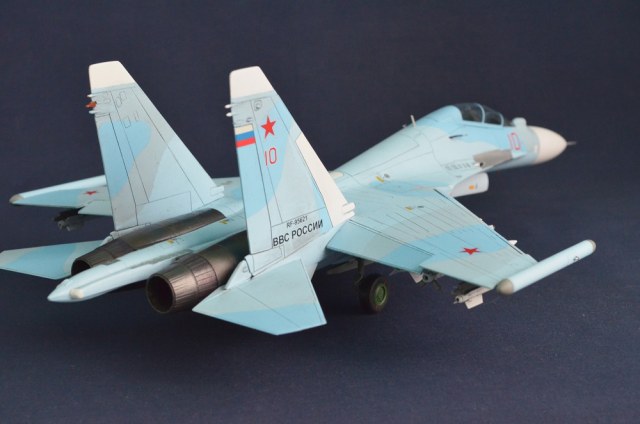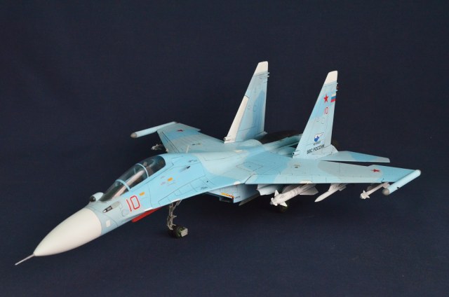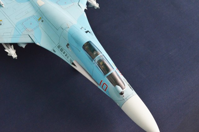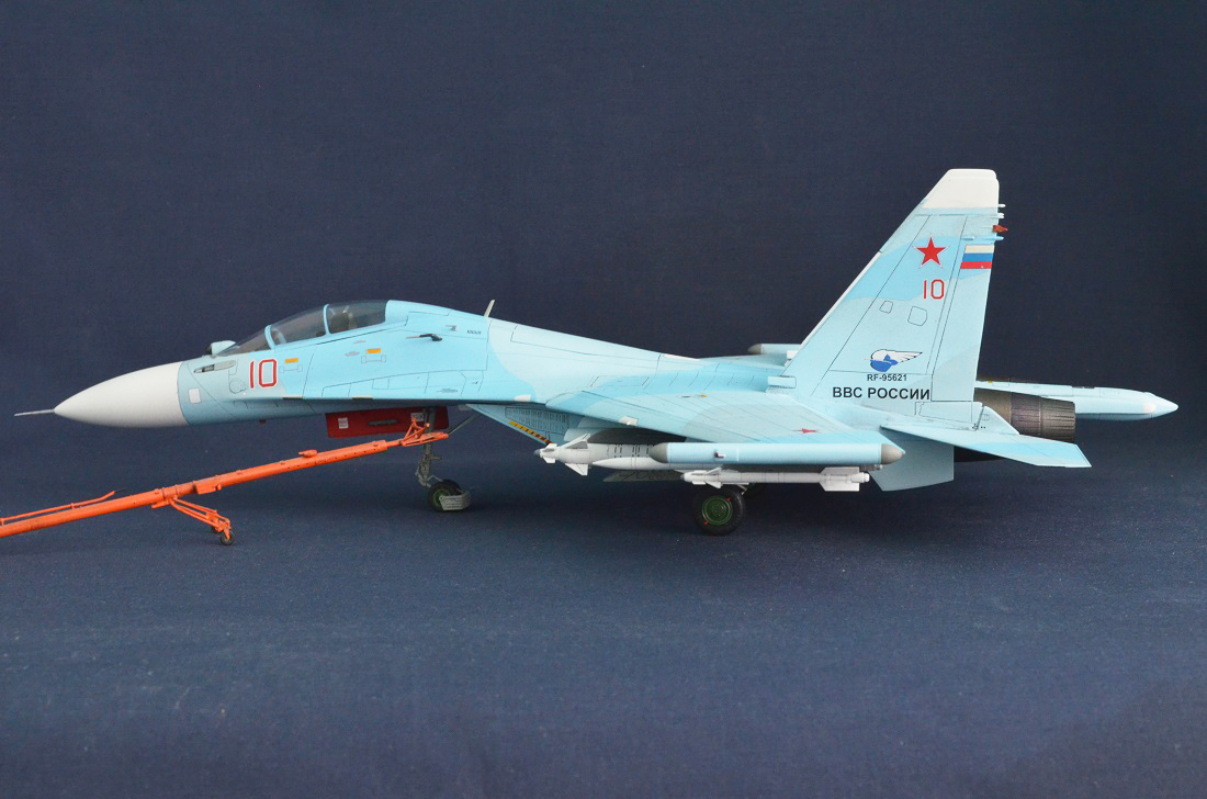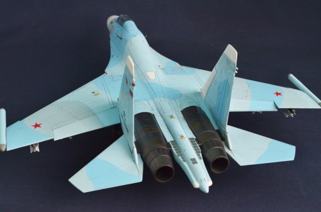 Что собой представляет данный набор выпущенный в 2014 году , собственно старый Су-27 УБ дополненный новыми литниками с деталями характерным конструктивными изменениями в конструкции планера, это носовая часть со смещенным к правому борту ОЛС, штанги дозаправки топливом. На кили данный производитель не стал замарачиватся и оставил их старыми, хотя они имеют совсем другую форму.