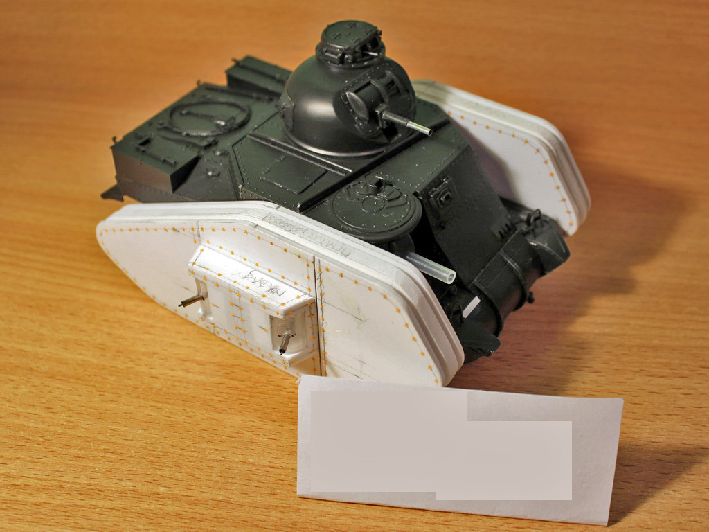 Повторюсь: модель делалась на конкурс, суть которого - стилизовать танк выпуска после 1930 года под танк времен первой мировой войны. Показалось, что M3Lee переделать таким образом будет, с одной стороны, не очень сложно, а с другой стороны вполне в духе первых танков.