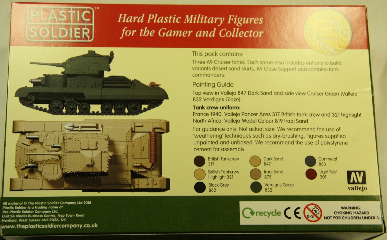 Набор Британский крейсерский танк. Cruiser Mk I /Mk ICS (A9) от фирмы «Plastic Soldiers» в масштабе 1/72. 3 модели в наборе.