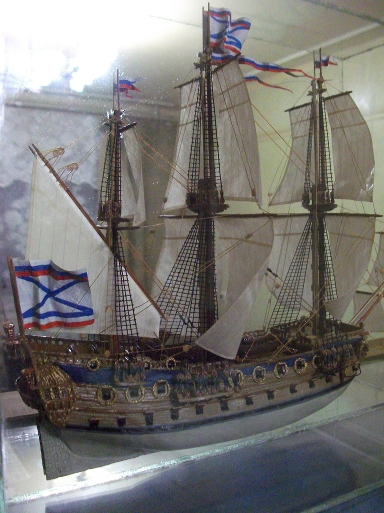 Со светлым днищем-Гото предесцинация первый корабль задуманный и построенный русскими мастерами по европейскому образцу.Есть свидетельства что руку приложил и Петр 1.
