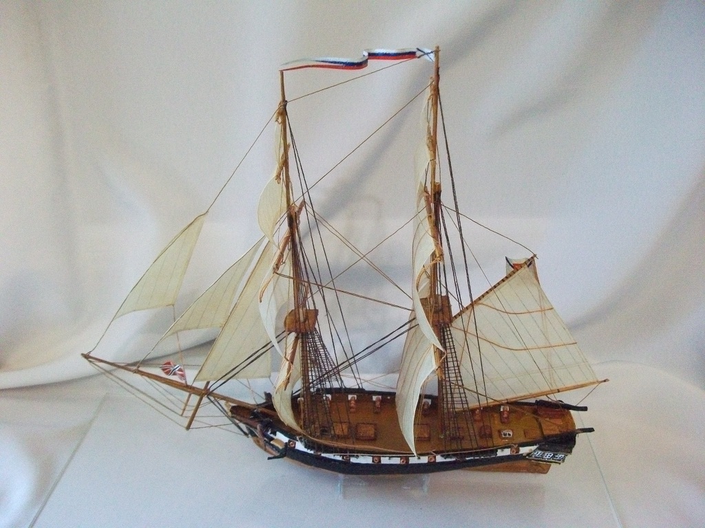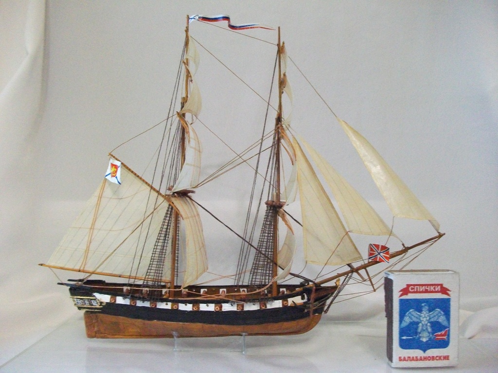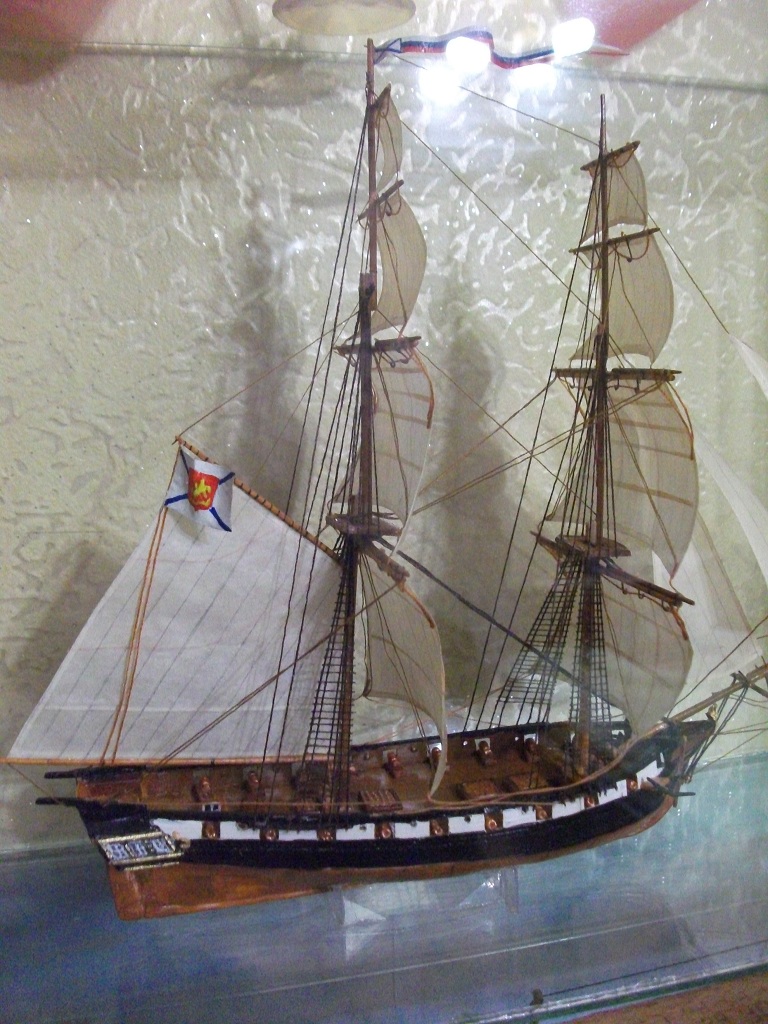 Двухмачтовый-бриг-Меркурий знаменитый тем,что вышел победителем в бою с двумя линейными кораблями турок.