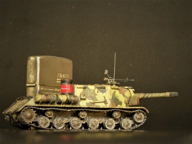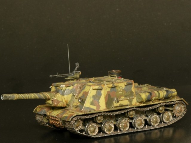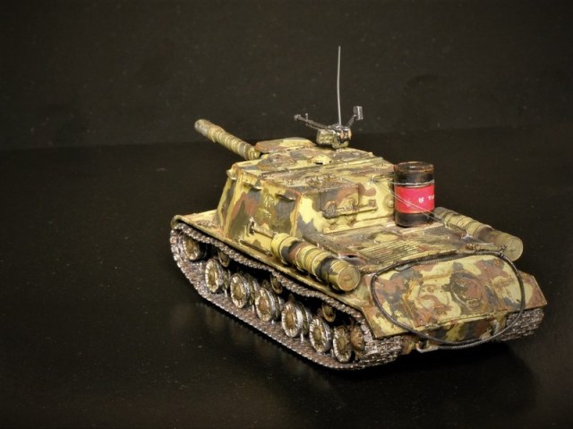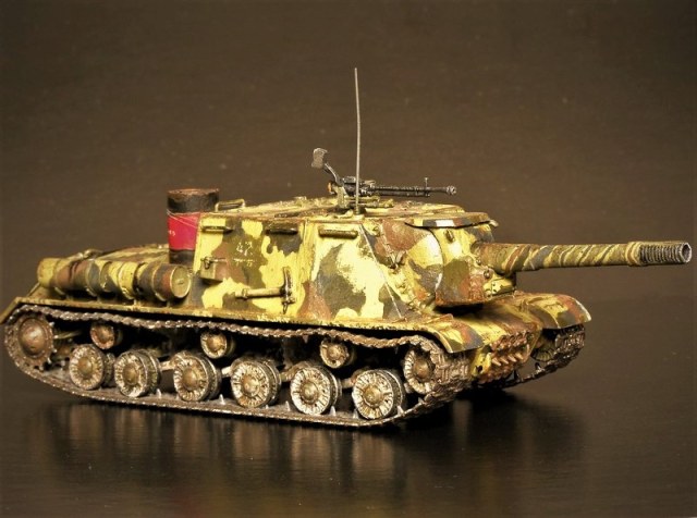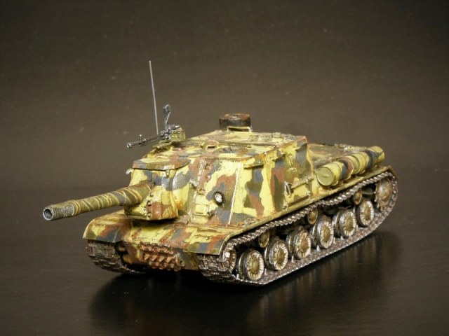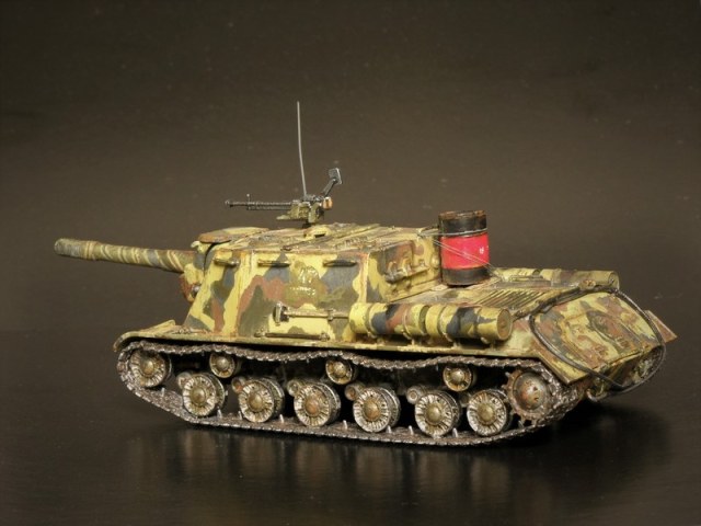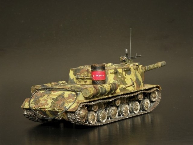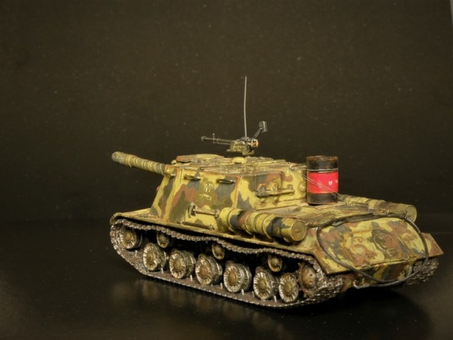 Согласно инструкции предлагается три варианта покраски. Я выбрал свой. В этих ваших интернетах найдена фотография прототипа, заявленная как ИСУ-152 перед Львовско-Сандомирской операцией лета 1944 года. По моему сюжету данный самоход в несколько позднем времени. Часть уже переформировали, да и война близится к завершению.