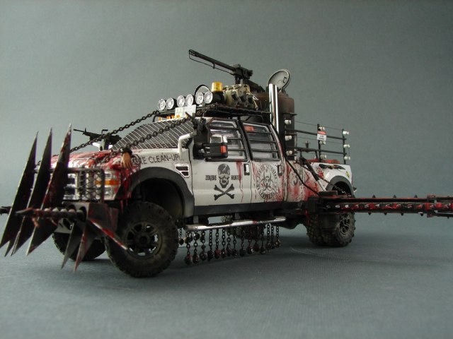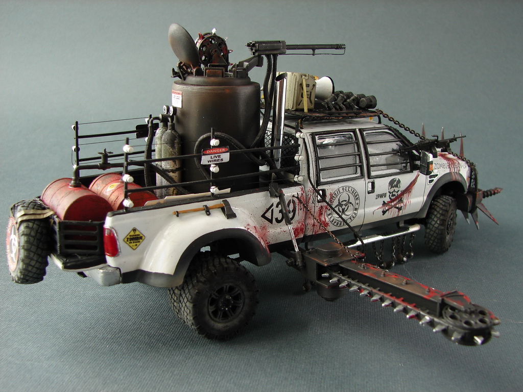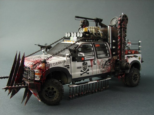 Фордик обалденный!!! Начинка кузова отличная! Дихлофосом ёмкости заряжены?! :-)) А зубы на пилах надо было сделать помельче, а то зомбаков, прежде чем их разорвёт будет шваркать о кабину.